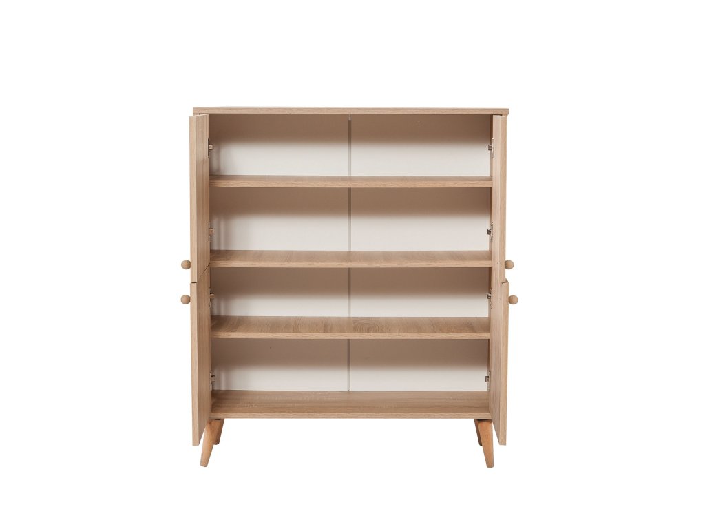 Táto skrinka je vyrobená zo 100% drevotriesky s melamínovým povlakom a je konštruovaná tak, aby vydržala. Hrúbka 18 mm zaisťuje odolnosť a robustnosť, zatiaľ čo UV povlak ju chráni pred poškriabaním a vyblednutím. Hrabové nohy zaisťujú stabilitu a kovové a lanové úchyty dodávajú nádych elegancie.