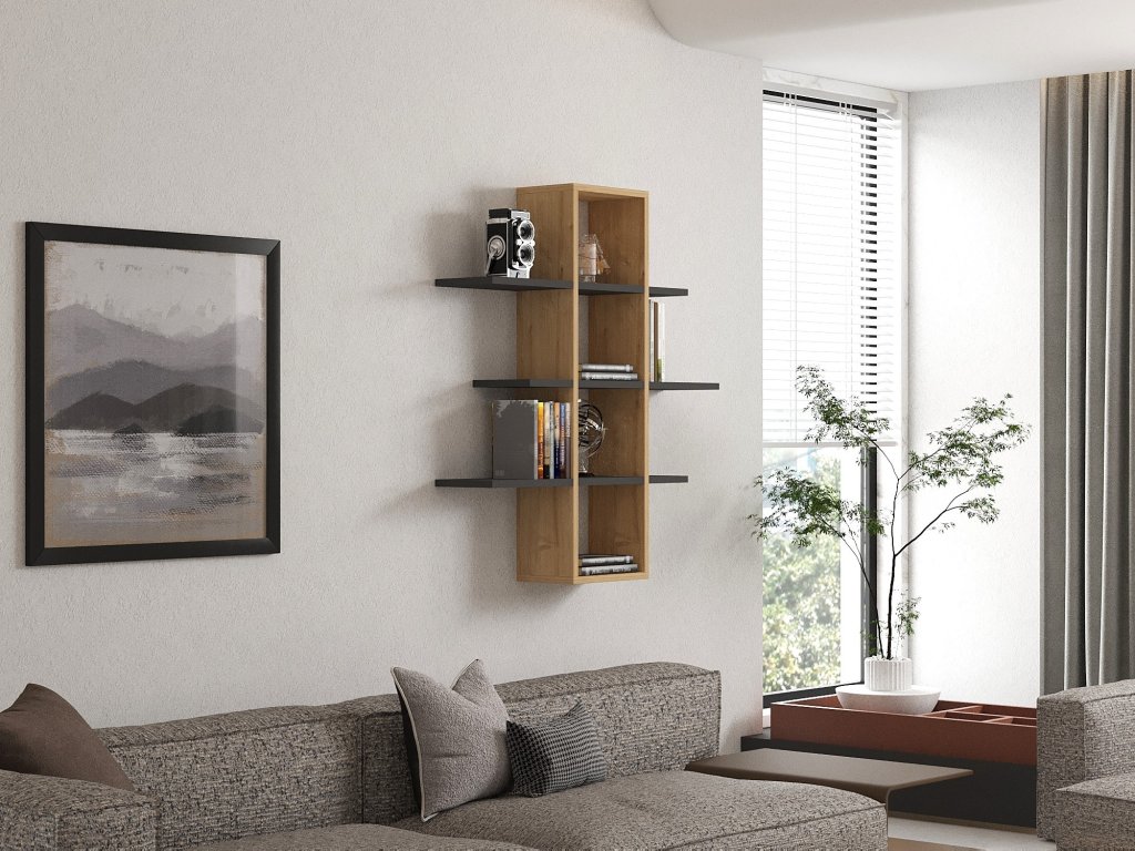 Nástenná polica je vyrobená z kombinácie zafírovej a antracitovej farby sofistikovanosti. Či už chcete vytvoriť ústredný bod, alebo len vylepšiť existujúcu dekoráciu, táto polica určite zaujme. Naša nástenná polica je vybavená mnohými policami, ktoré poskytujú dostatok priestoru na uloženie a vystavenie vašich obľúbených kníh, dekoratívnych predmetov alebo dokonca rastlín. Od vystavenia vašich cenných vecí až po udržanie každodenných nevyhnutností na dosah ruky – táto polica je prevratná.