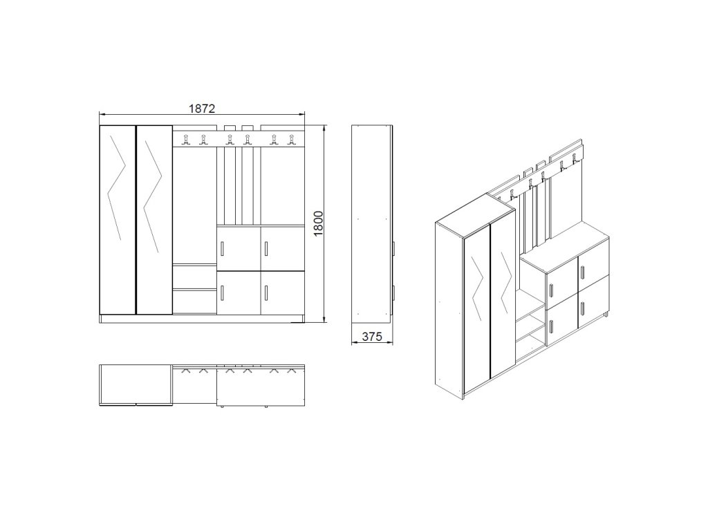 | Zostava obsahuje: | vešiaková stena so skrinkou, policová skriňa so zrkadlom |