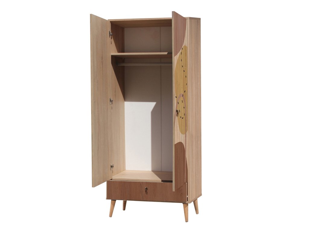 Šatníková skriňa NATY prináša do vášho interiéru eleganciu a funkčnosť. Vďaka multicolor designu a dreveným nohám pôsobí luxusne a moderne. Je ideálnou voľbou pre spálňu aj predsieň, kde ponúkne dostatok úložného priestoru.