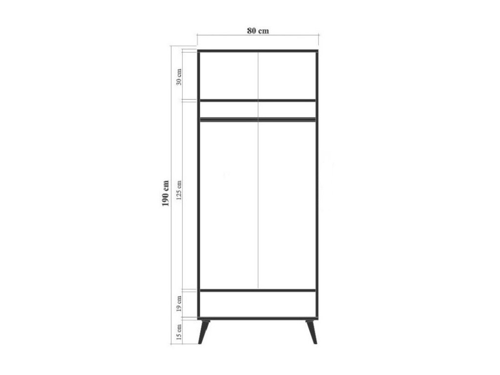 Skriňa NATY je vybavená šatníkovou tyčou, ktorá ponúka dostatok priestoru na zavesenie oblečenia, a jednou zásuvkou na drobnosti alebo príslušenstvo. Polica je ideálna na uloženie zloženej bielizne či ďalších predmetov. Kombinácia elegantného dizajnu a premysleného usporiadania ju robí nielen krásnym, ale aj praktickým nábytkom.