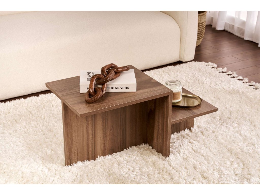 Premeňte svoj obývací priestor s naším úžasným konferenčným stolíkom z orechového dreva. Tento nádherný kus nábytku je vyrobený zo 100% drevotriesky s melamínovým povlakom, čo zaručuje odolnosť a dlhú životnosť. Sýta farba orechového dreva dodá každej miestnosti nádych elegancie a stane sa tak perfektným ústredným bodom vášho domova. Jeho elegantný dizajn a moderná povrchová úprava okamžite pozdvihnú vzhľad vášho priestoru a vytvoria teplú a príjemnú atmosféru, ktorú si vy aj vaši hostia užijete. Robustná konštrukcia zaisťuje, že vydrží každodenné používanie a zostane vyzerať ako nový po mnoho rokov.