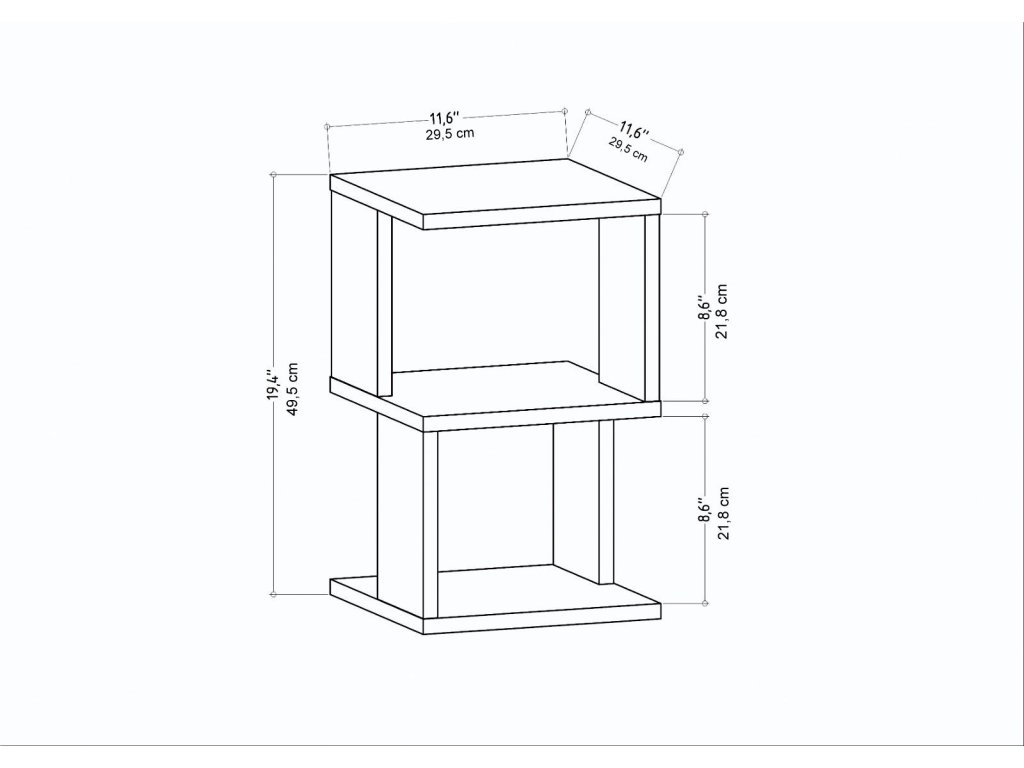 S šírkou 29,6 cm, hĺbkou 29,6 cm a výškou 49,4 cm vaša noha. Priestranná horná plocha je ideálna na uloženie lampy, kníh alebo vašich obľúbených dekoračných predmetov, zatiaľ čo otvorená polica a zásuvka poskytujú praktické možnosti uloženia vašich vecí. povlakom