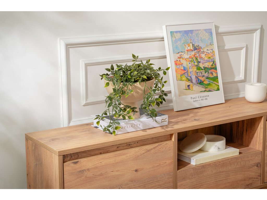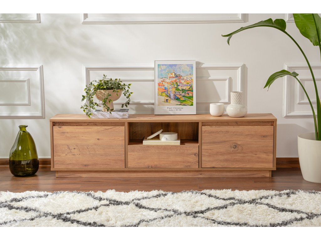 S týmto priestranným televíznym stolíkom sa rozlúčte s neporiadkom a privítajte organizáciu. Vďaka dostatku úložného priestoru pre všetky vaše mediálne nevyhnutnosti si môžete udržať svoju obývaciu izbu upratanú a zároveň vystaviť svoje obľúbené dekoračné kúsky. udržuje. Jeho hrúbka 18 mm zaisťuje dlhú životnosť, takže si môžete užívať jeho krásu po mnoho rokov. (V) x 29,5 cm (H)