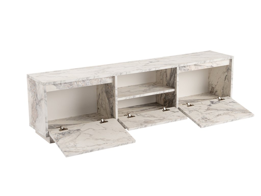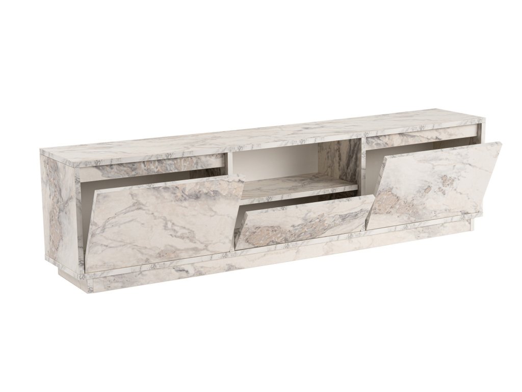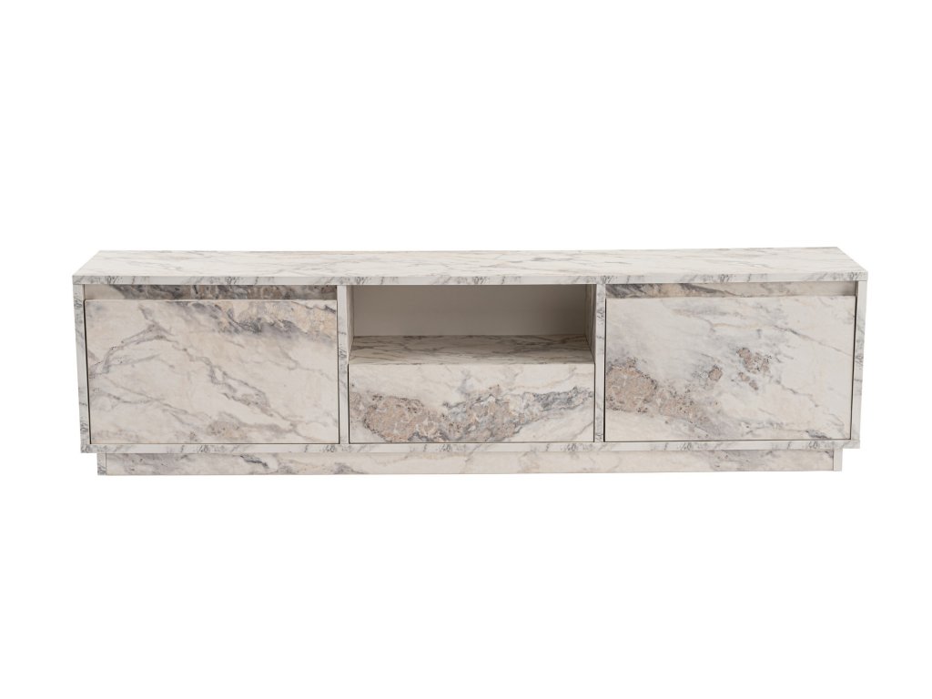 Vďaka svojmu elegantnému dizajnu a modernej povrchovej úprave tento televízny stolík okamžite pozdvihne vzhľad vašej obývačky. Farba frézie a mramor dodá vašej obývačke nádych luxusu a stane sa tak perfektným ústredným bodom vašej zábavnej zóny.