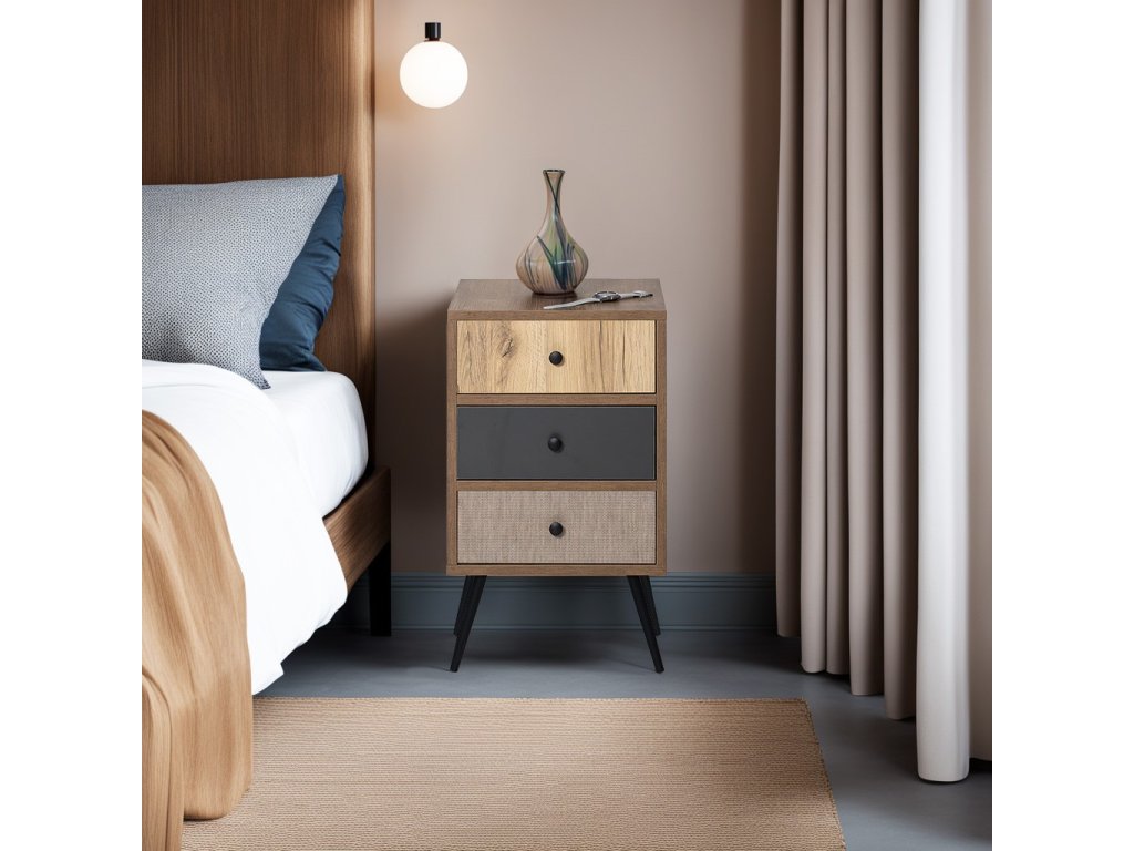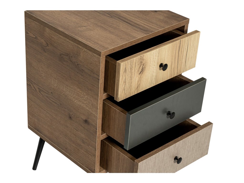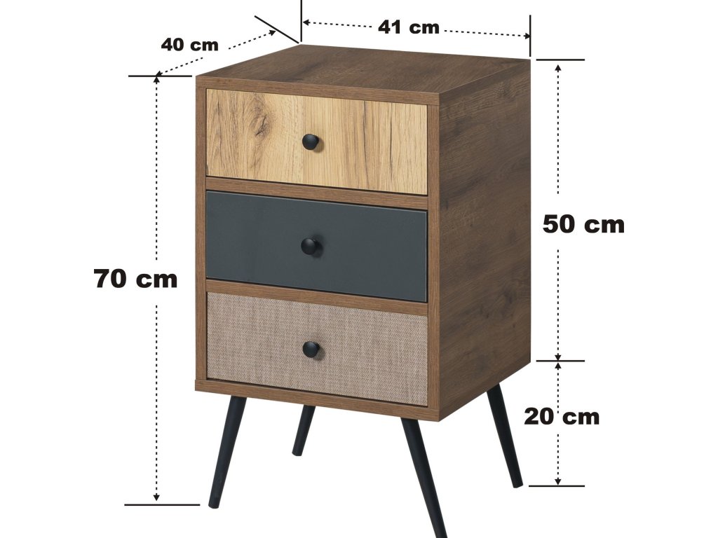 Táto komoda je vybavená tromi priestrannými zásuvkami a ponúka dostatok úložného priestoru pre vaše oblečenie, doplnky alebo akékoľvek ďalšie nevyhnutnosti. Zásuvky sa plynule posúvajú, čo umožňuje ľahký prístup a bezproblémovú organizáciu.