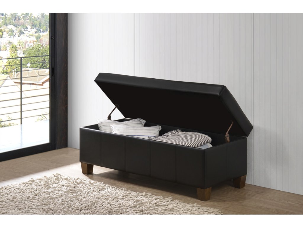 Taburetka TRACK je multifunkčným nábytkom v modernom prevedení. Oceníte jej priestrannosť a účelnosť. Štýlové prešitie čalúnených častí v kombinácii s rustikálnymi nožičkami vytvára nadčasové dizajnové prevedenie. Vďaka výklopnému systému otvárania získate praktický odkladací priestor. Nohy taburetky sú vyrobené z masívu, vo farebnom odtieni orech. Boky aj sedacia časť je čalúnená eko-kožou v čiernom farebnom prevedení. V našej ponuke nájdete túto taburetku aj v bielej eko-koži. Rozmery (š/v/h): 107 x 43 x 43 cm. Dodávame v demonte.Dodatočné parametre