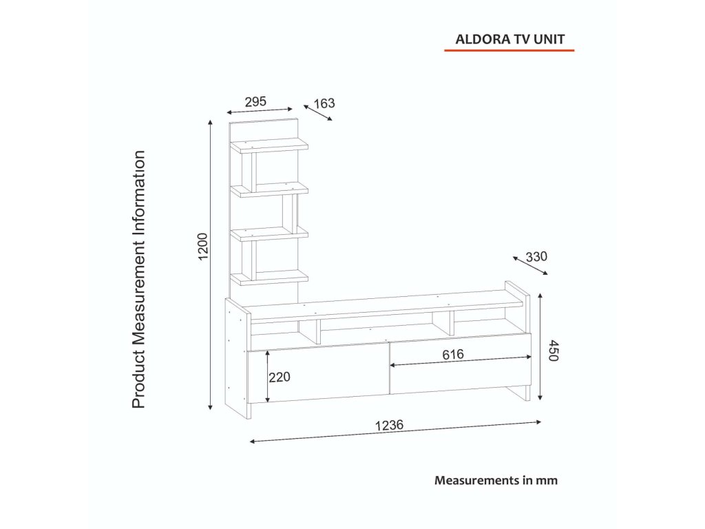 - Rozmery: 123.6 x 45 x 33 cm, ideálny pre moderné obývacie priestory.