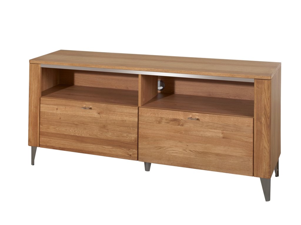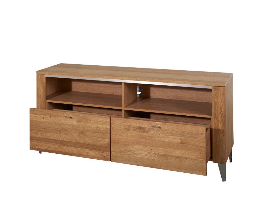 Televízny stolík disponuje dvomi praktickými zásuvkami. Vo vrchnej časti sú dva otvorené úložné priestory, vhodné na wifi router, DVD prehrávač a podobne.