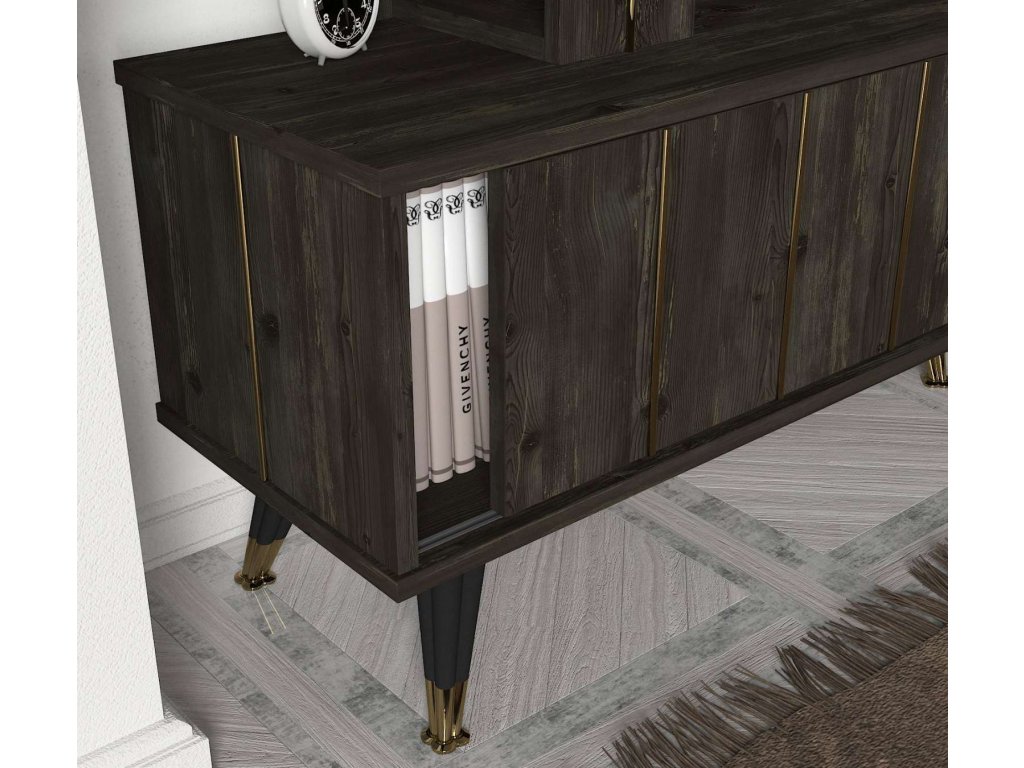 Predstavujeme BURNING, TV stolík, ktorý dokonale spája funkčnosť s elegantným dizajnom. Jeho robustná konštrukcia a tmavo hnedá farba prináša do každej obývačky pocit tepla a domácnosti.