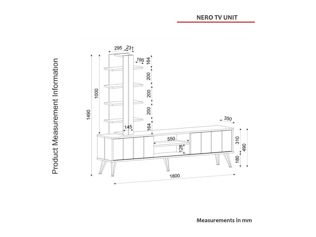 - Rozmery: 49 x 180 x 35 cm, ideálny na umiestnenie stredne veľkých a veľkých televíznych obrazoviek.