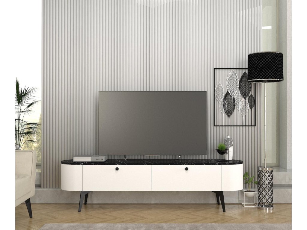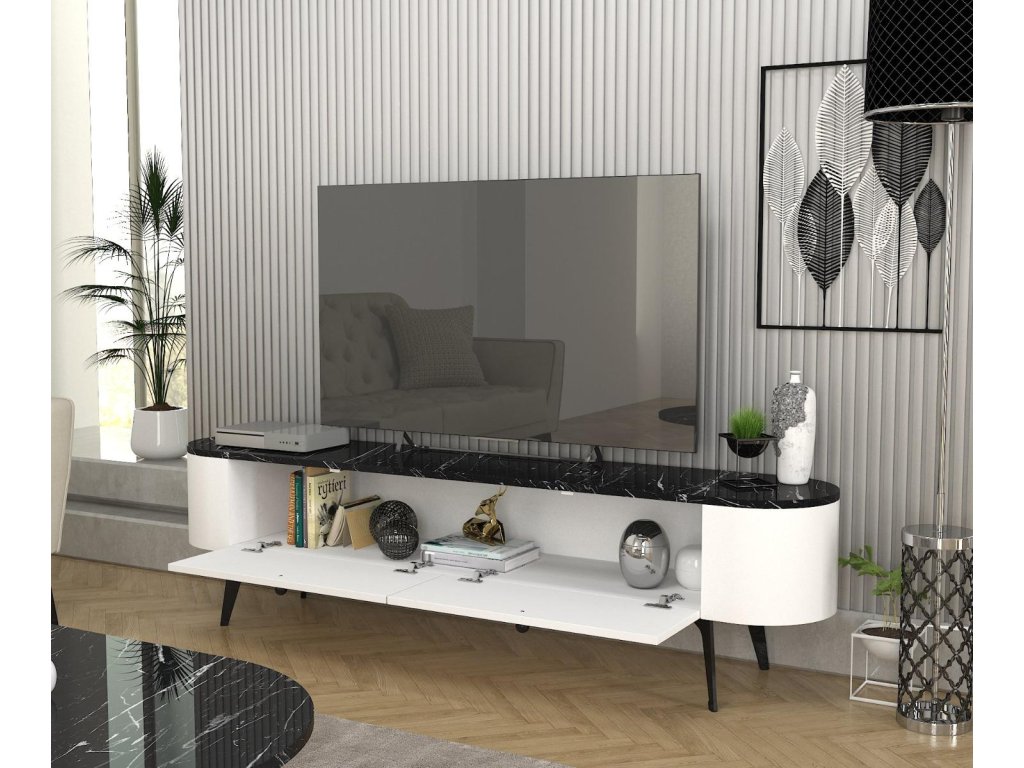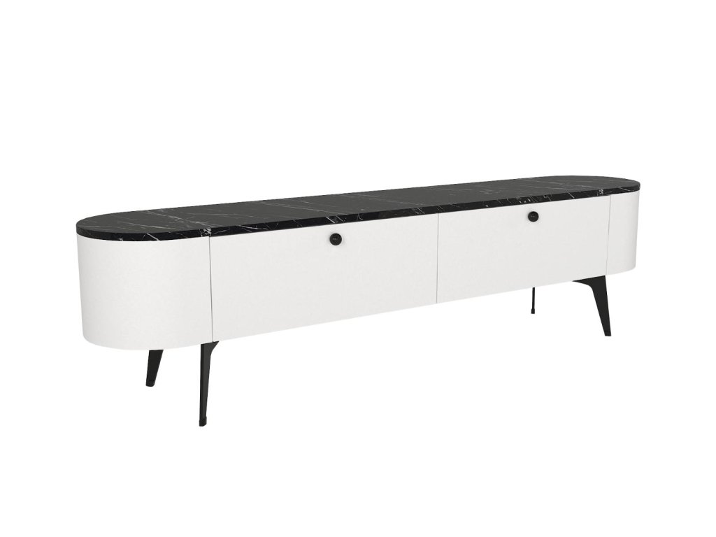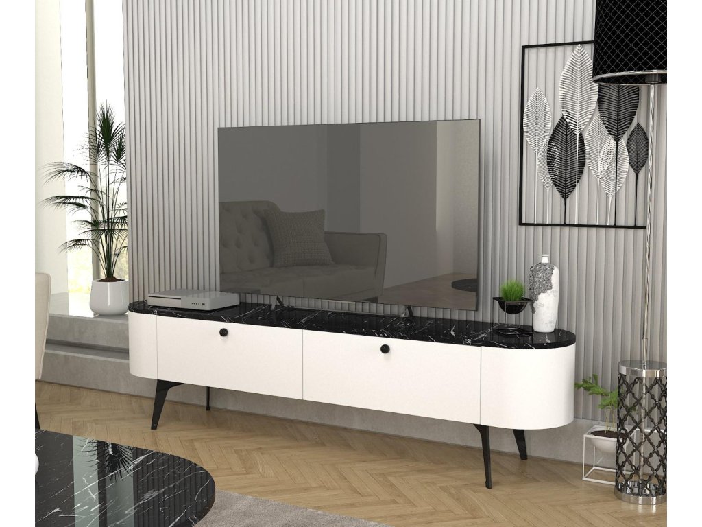 Televízny stolík EGYPT, biela/čierny mramor