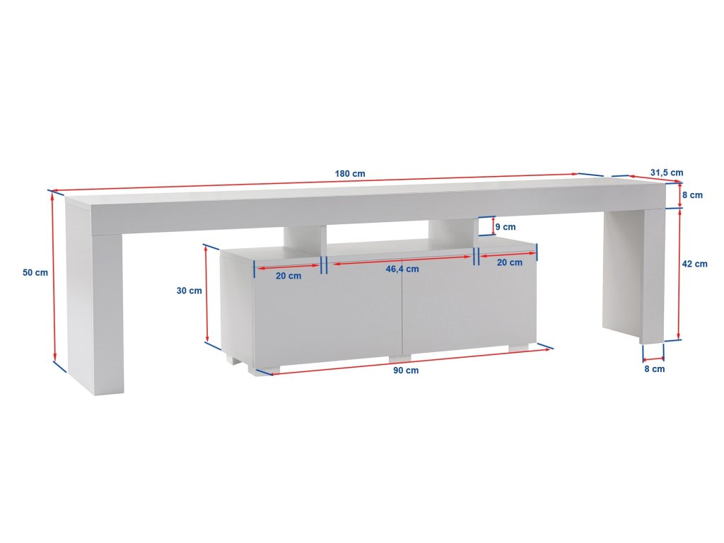 Tento televízny stolík, vyrobený s precíznosťou a dôrazom na detail, je navrhnutý tak, aby vydržal. Hrúbka drevotriesky 18 mm zaisťuje stabilitu a odolnosť, zatiaľ čo šírka 180 cm poskytuje dostatok priestoru pre váš televízor a ďalšie mediálne zariadenia.