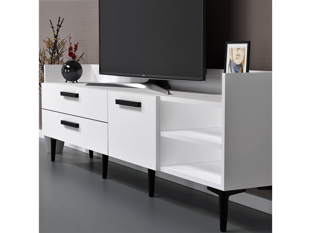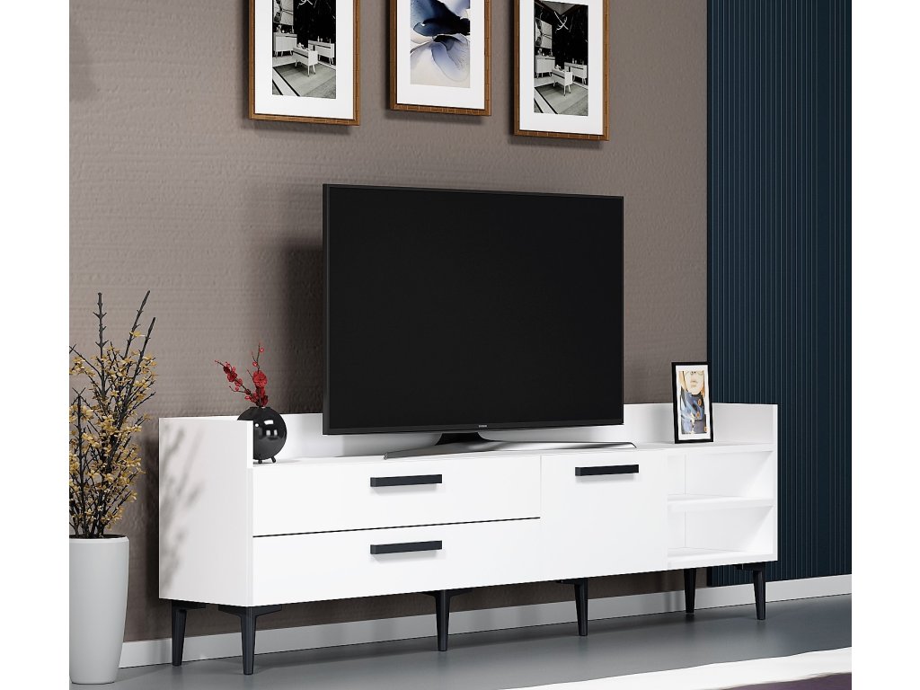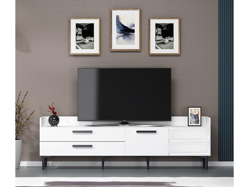 TV stolík PIKE je ideálnou voľbou pre tých, ktorí hľadajú elegantný a funkčný nábytok do obývačky. Vďaka svojmu modernému dizajnu a praktickému usporiadaniu poskytuje dostatok úložného priestoru a ľahko zapadne do každého interiéru.