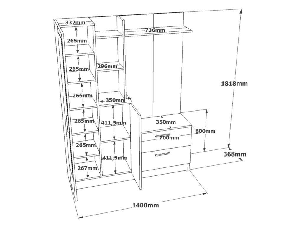 Rozmer: 182 x 140 x 35 cm