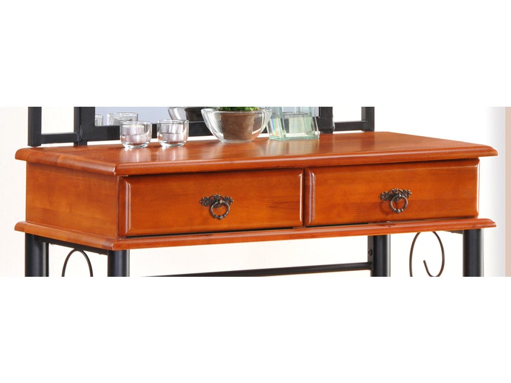 Elegantná toaletka CETINA so zaujímavým dekoračným vzorom. Je vybavená dvomi praktickými zásuvkami. Je vyrobená z kombinácie dreva a kovu. Farebné prevedenie antická čerešňa a čierny kov. V cene toaletky je zrkadlo aj taburetka. Dodávame v demonte. oBJEDNáVACí KÓD VER-0324Dodatočné parametre