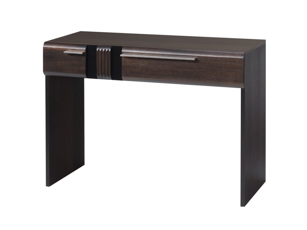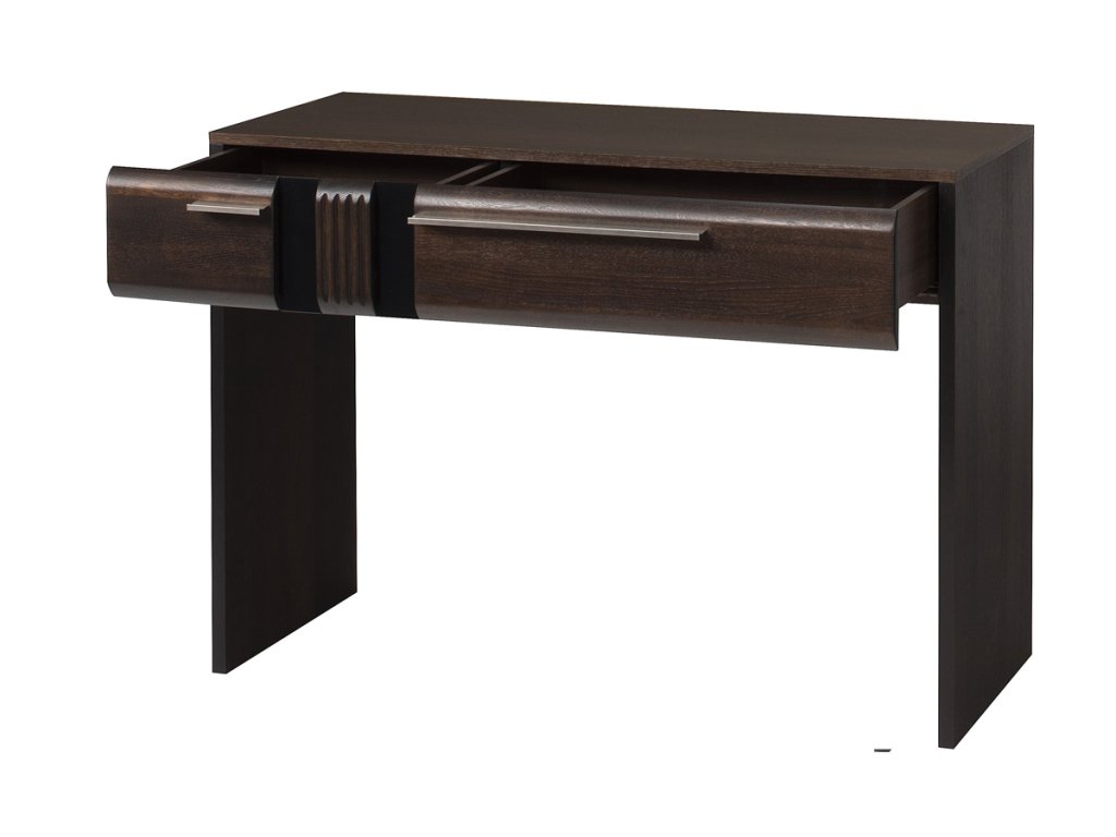 Ponúkame Vám exkluzívnu kolekciu nábytku PORTORIKO, z ktorej si dokážete zariadiť elegantnú spálňu, jedáleň či obývacia izbu. Jej súčasťou je aj toaletný stolík PORTORIKO 78, čo ocenia najmä ženy. Dizajnové prevedenie nábytku zvýrazňuje efektné 3D riflovanie na dekoračných lištách, ktoré je kombinované s elegantným čiernym sklom. Praktický odkladací priestor je zabezpečený vďaka dvojzásuvke s kovovými úchytmy . Stolík je vyrobený z vysoko kvalitných materiálov. Korpus je z prírodnej dýhy, predné čielka zásuviek sú z dubového masívneho dreva. Rozmery (š/v/h) 110 x 78 x 46 cm. Farba: dub čokoládový/čierne sklo. Ku stolíku si môžete doobjednať elegantnú taburetku s tapacírovaním, ktorá je vyrobená v rovnakom farebnom a dizajnovom prevedení. Luxusný sektorový nábytok PORTORIKO sa stane ozdobou Vašej domácnosti. Pre zariadenie štýlovej spálne, obývacej izby alebo jedálne si môžete vybrať z viacerých samostatných elementov PORTORIKO. Dodávame zmontované.Dodatočné parametre