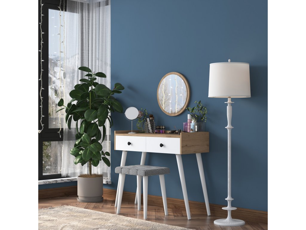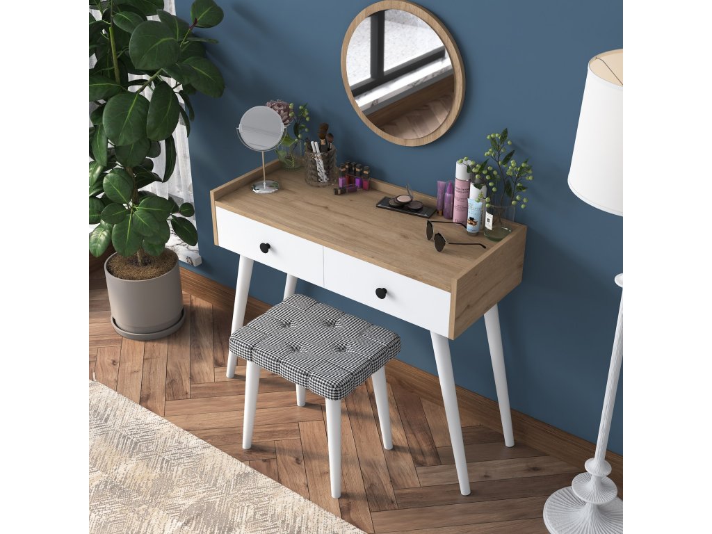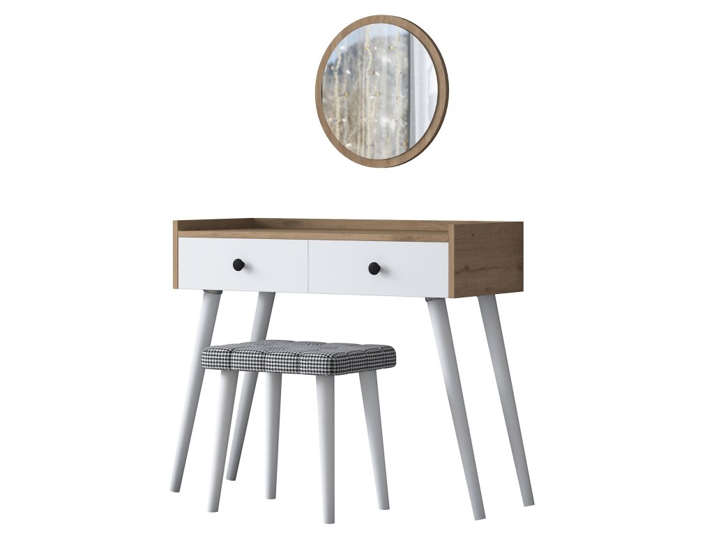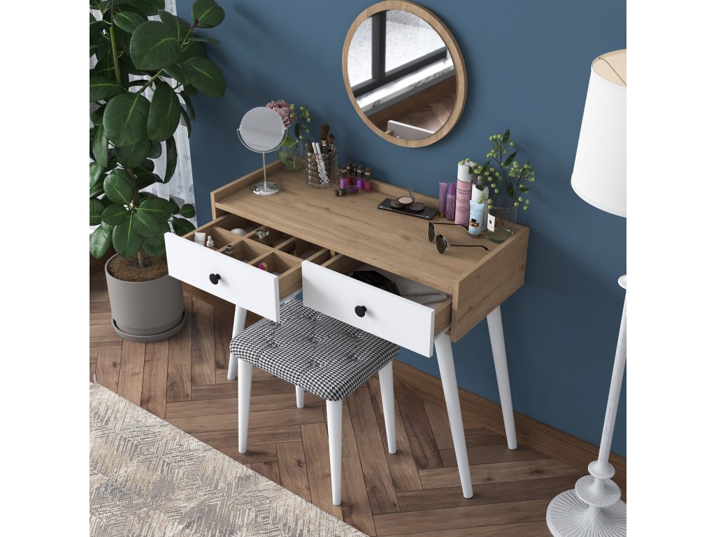 Toaletný stolík s taburetkou NOSE, orech/biela