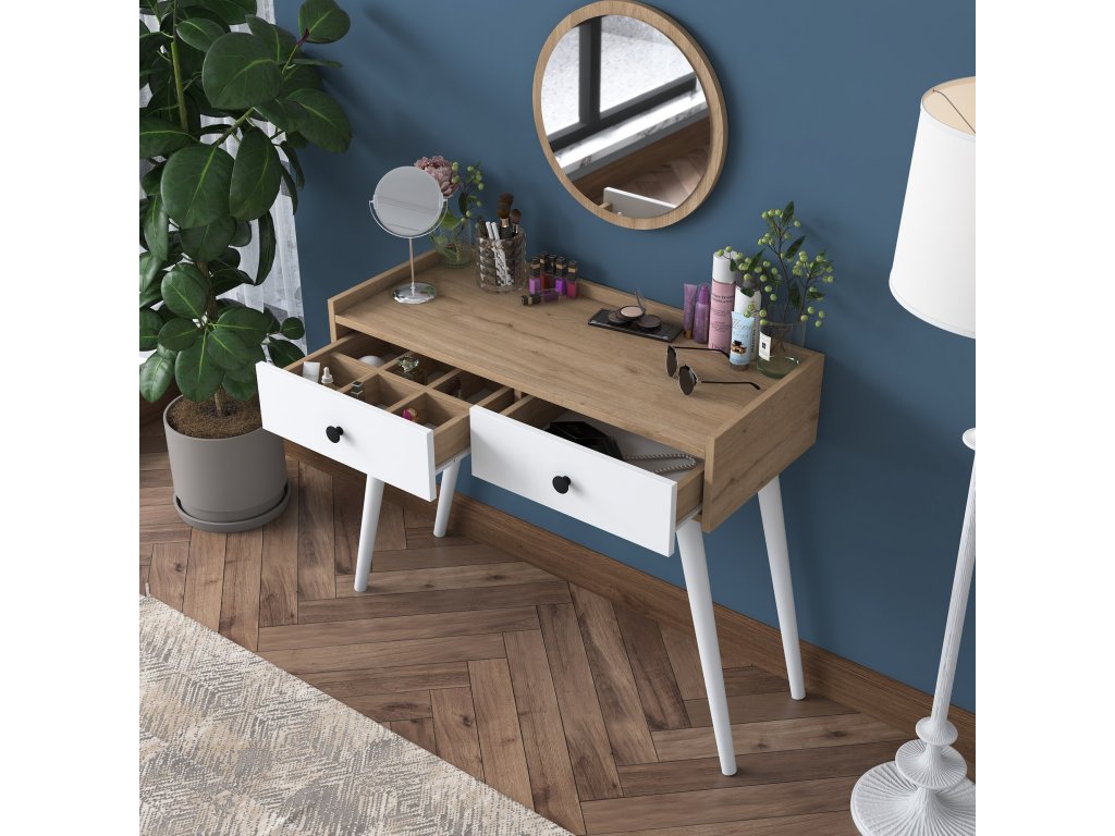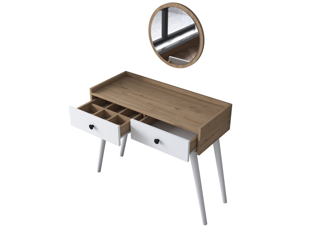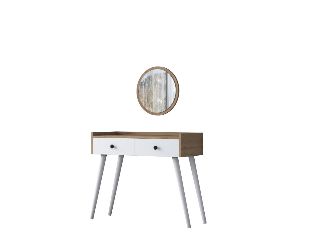 Toaletný stolík so zrkadlom BIDEN, dub/biela