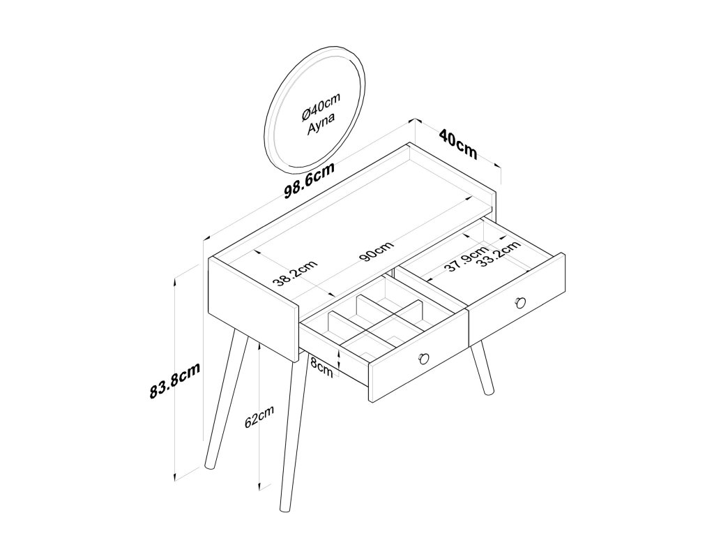 - Funkcia: Úložný priestor s 2 zásuvkami a zrkadlom