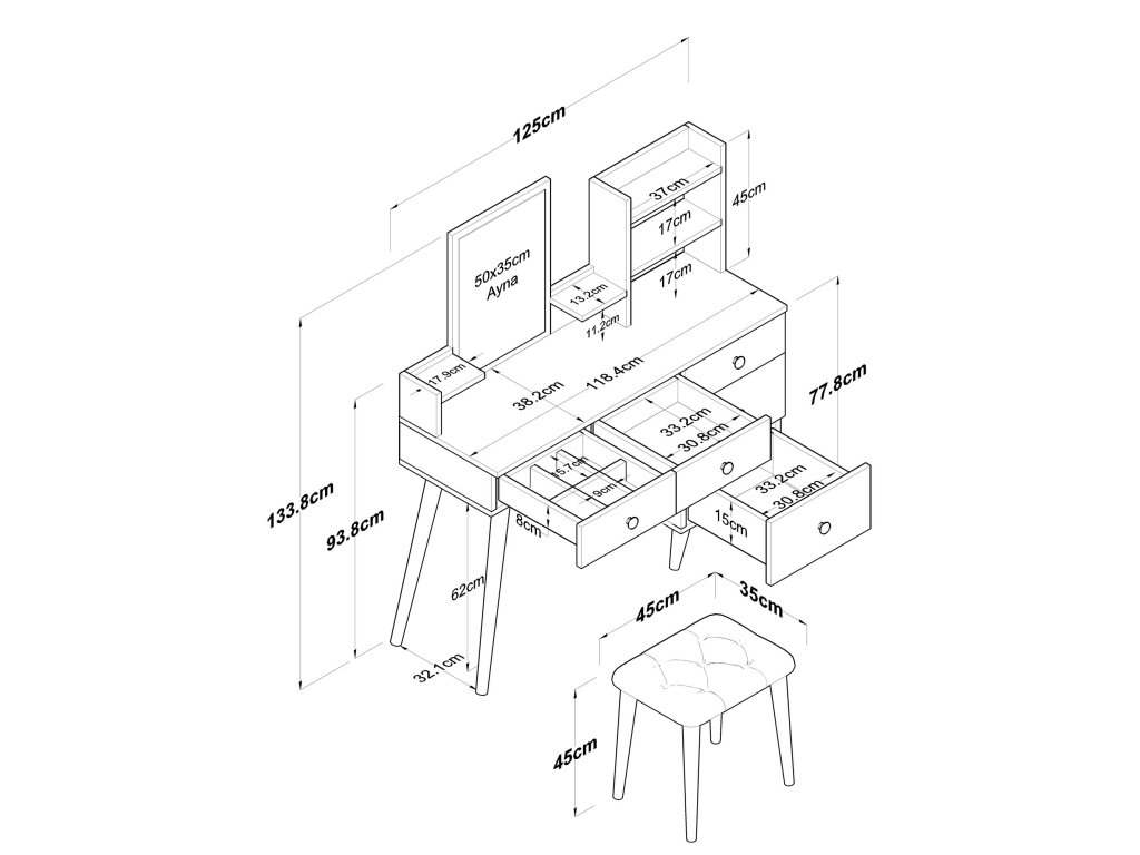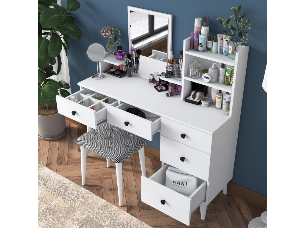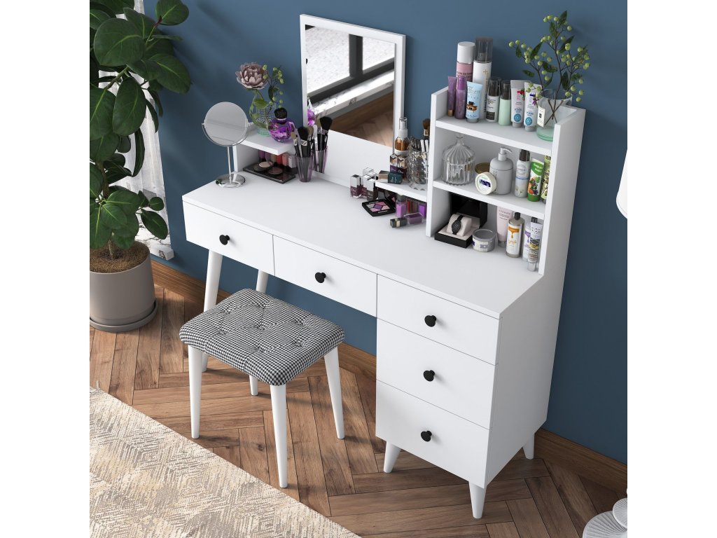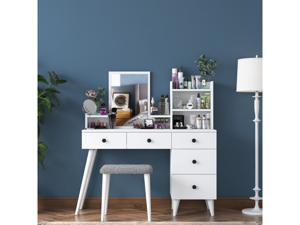 - 5 priestranných zásuviek na uloženie kozmetiky, šperkov alebo iných doplnkov.
