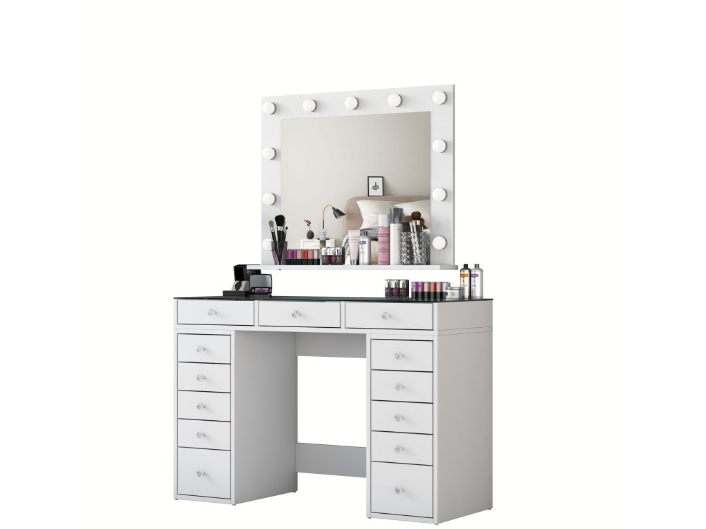 Toaletný stolík LABEL nielenže skvele vyzerá, ale taktiež ponúka dostatok úložného priestoru vďaka 13 zásuvkám. Zrkadlo integrované do dizajnu uľahčuje prípravy a dodáva stolíku ďalšiu praktickosť.