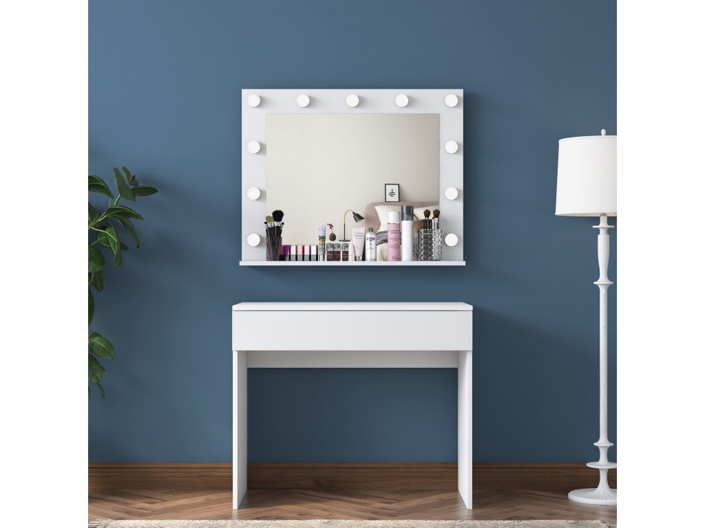 Toaletný stolík LATÍNO je vybavený priestrannou zásuvkou, ktorá poskytuje dostatok miesta na uloženie kozmetiky, šperkov alebo iných drobností. Veľké zrkadlo zaisťuje komfortný priestor pre každodennú starostlivosť o váš vzhľad.