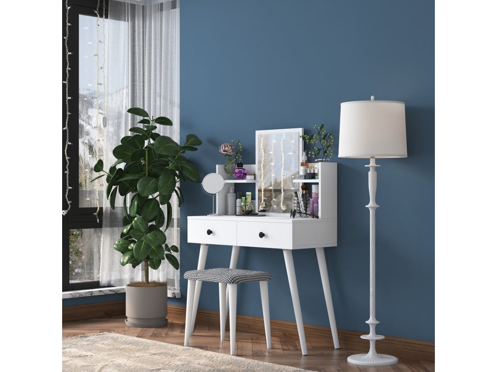 Toaletný stolík so zrkadlom LISTEN, biela