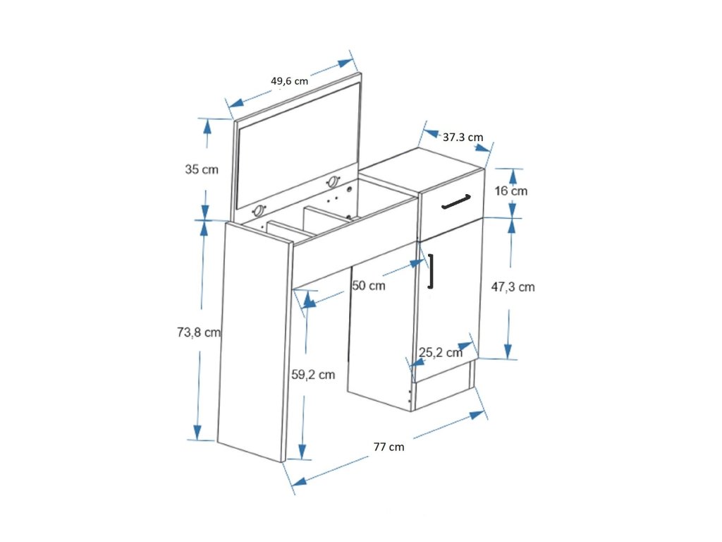 | Dôležité informácie: | Možné pripevniť na stenu. Horná doska stola je výklopná a je na nej zrkadlo. |
