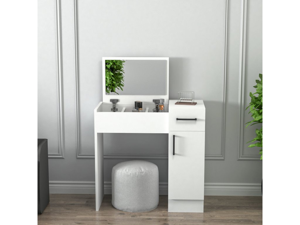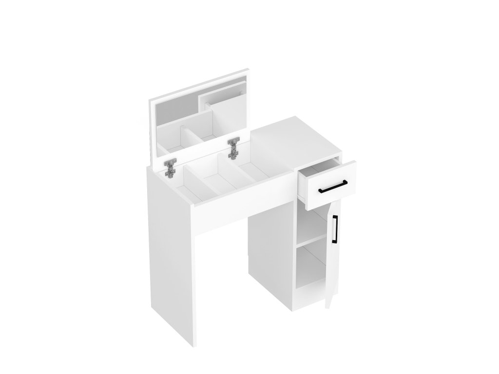 Toaletný stolík OMAHA je ideálnym riešením pre každú spálňu, kde je kladený dôraz na estetiku a praktickosť. Tento moderný stolík ponúka inteligentné úložné priestory, vrátane zásuvky, plného dvierka a výklopnej hornej dosky so zrkadlom. Vďaka svojmu elegantnému dizajnu a kvalitnému prevedeniu sa ľahko stane štýlovým doplnkom vášho interiéru.