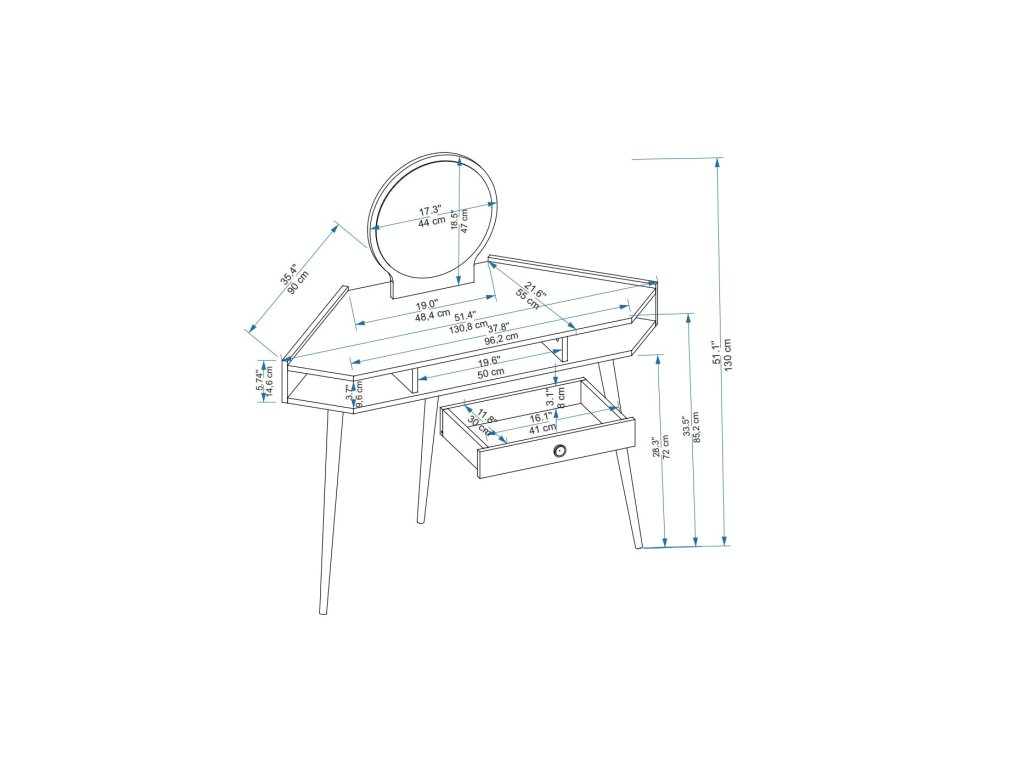 Toaletný stolík SEATTLE je ideálnym riešením pre spálne, ktoré potrebujú elegantný a funkčný doplnok. Vďaka svojmu rohovému designu efektívne využíva priestor a ponúka praktické vybavenie, vrátane zásuvky, regálku a integrovaného zrkadla. Drevené nohy pridávajú na stabilite a estetickom dojme, zatiaľ čo kvalitné materiály zaisťujú dlhú životnosť.