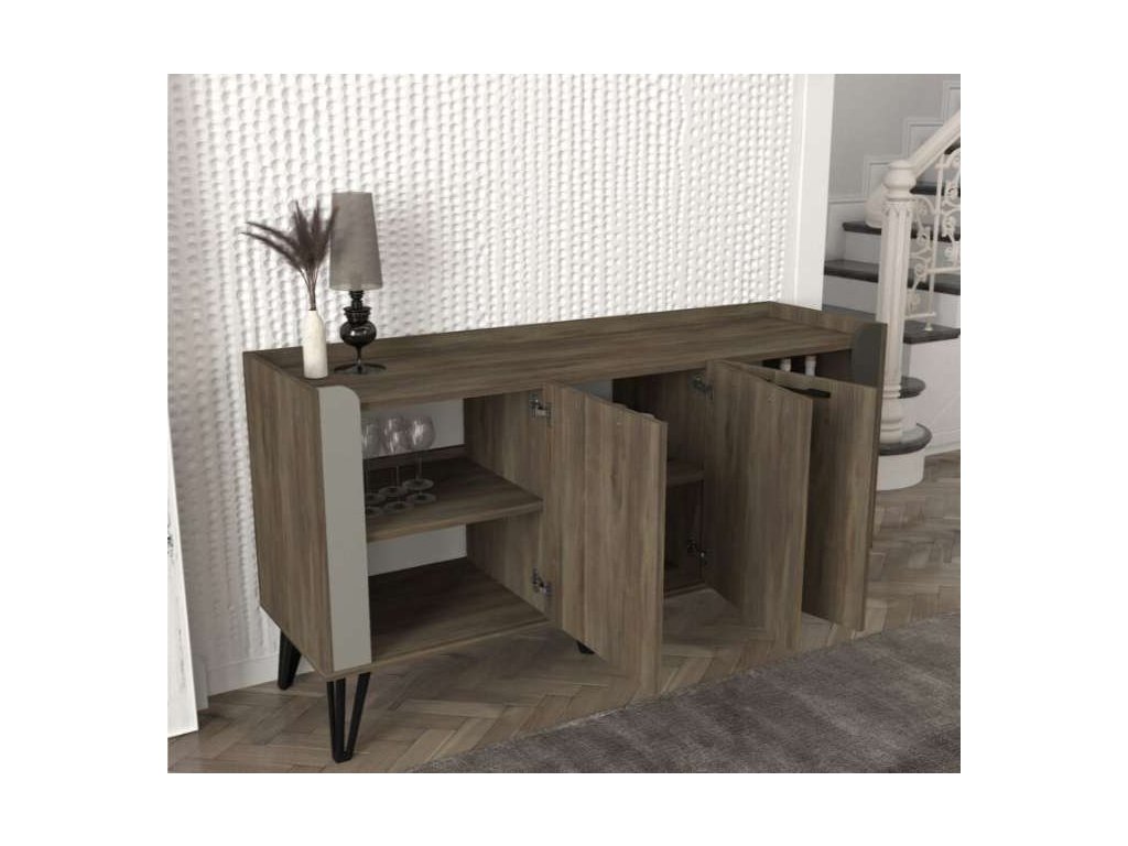 Komoda BRUGES je vyrobená z kvalitného LTD materiálu s hrúbkou 18 mm, čo zaisťuje jej pevnosť a dlhú životnosť. Elegantná kombinácia béžovej, hnedej a antracitovej farby dodáva komode moderný a sofistikovaný vzhľad, ktorý sa hodí do akéhokoľvek interiéru. Komoda je vybavená troma dvierkami, ktoré poskytujú dostatok úložného priestoru pre vaše potreby.
