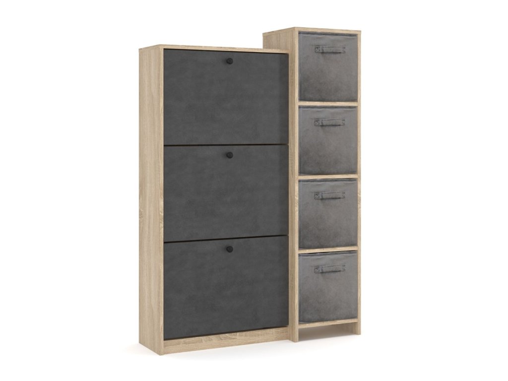 Regálok si môžete vyplniť praktickým organizérom v šedej látke, ktorý si k botníku môžete dokúpiť.