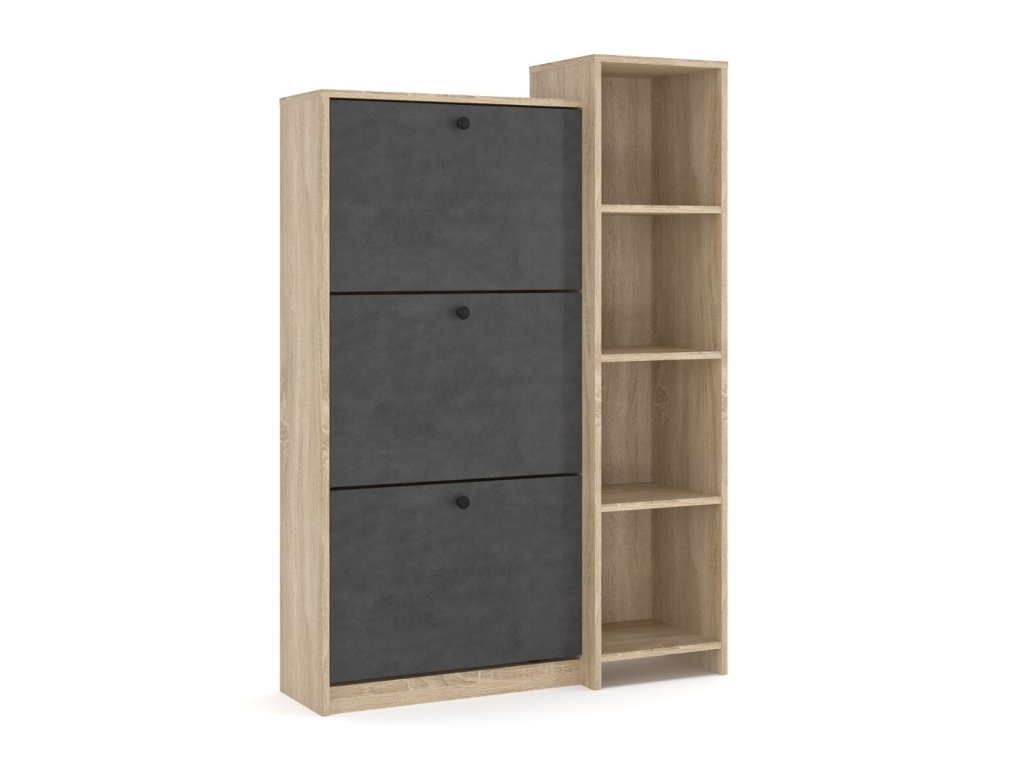 TONY 2 je zaujímavý trojdverový výklopný botník s regálom, vďaka ktorému získate dostatok úložného priestoru pre všetky Vaše potrebné veci.