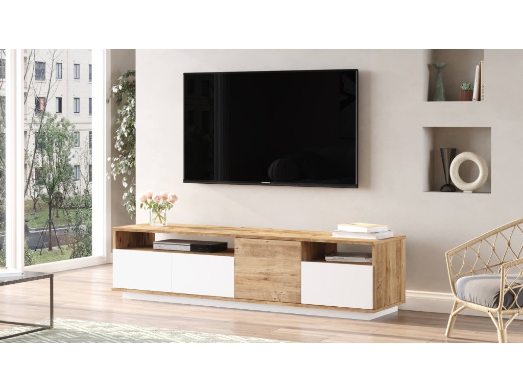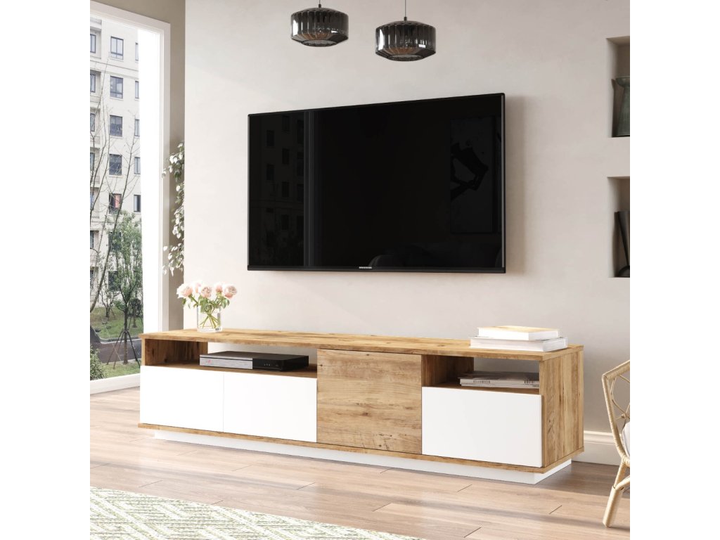 TV skrinka FREY 5, farba borovice + biela