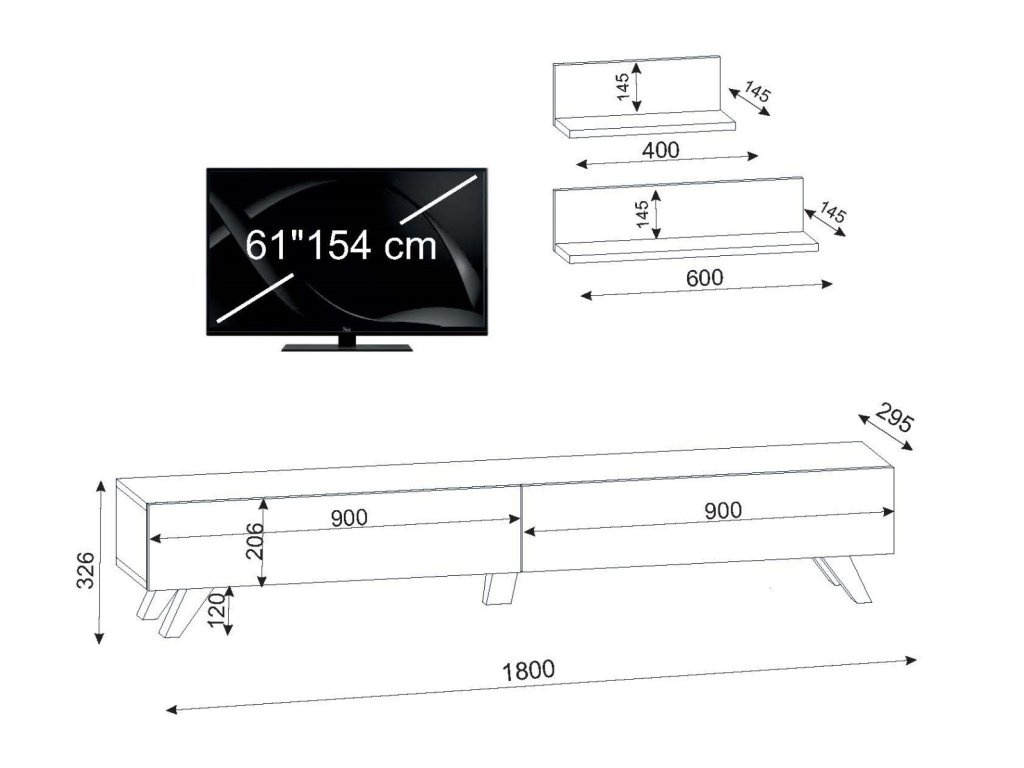 Rozmery TV stolíka: (š/v/h) 180 x 32,6 x 31,3 cm (ďalšie rozmery v nákrese)