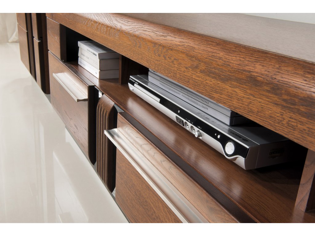 Podstavec pod televízor z exkluzívnej kolekcie nábytku PORTORIKO. Rozmery v/š/h 51 x 160 x 42 cm. Dodávame zmontované. Luxusný sektorový nábytok PORTORIKO sa stane ozdobou Vašej obývačky. Moderný dizajn nábytku podčiarkuje 3D riflovanie na dekoračných lištách, ktoré sú skombinované s elegantným čiernym sklom. Nábytok je vyrobený z vysoko kvalitných materiálov akými je dubové masívne drevo na predných častiach nábytku, korpus tvorí prírodná dyha. Úchytky sú kovové. Pre zariadenie štýlovej obývacej izby alebo jedálne máte k dispozícií 9 samostatných elementov. Dodávame zmontované.Dodatočné parametre