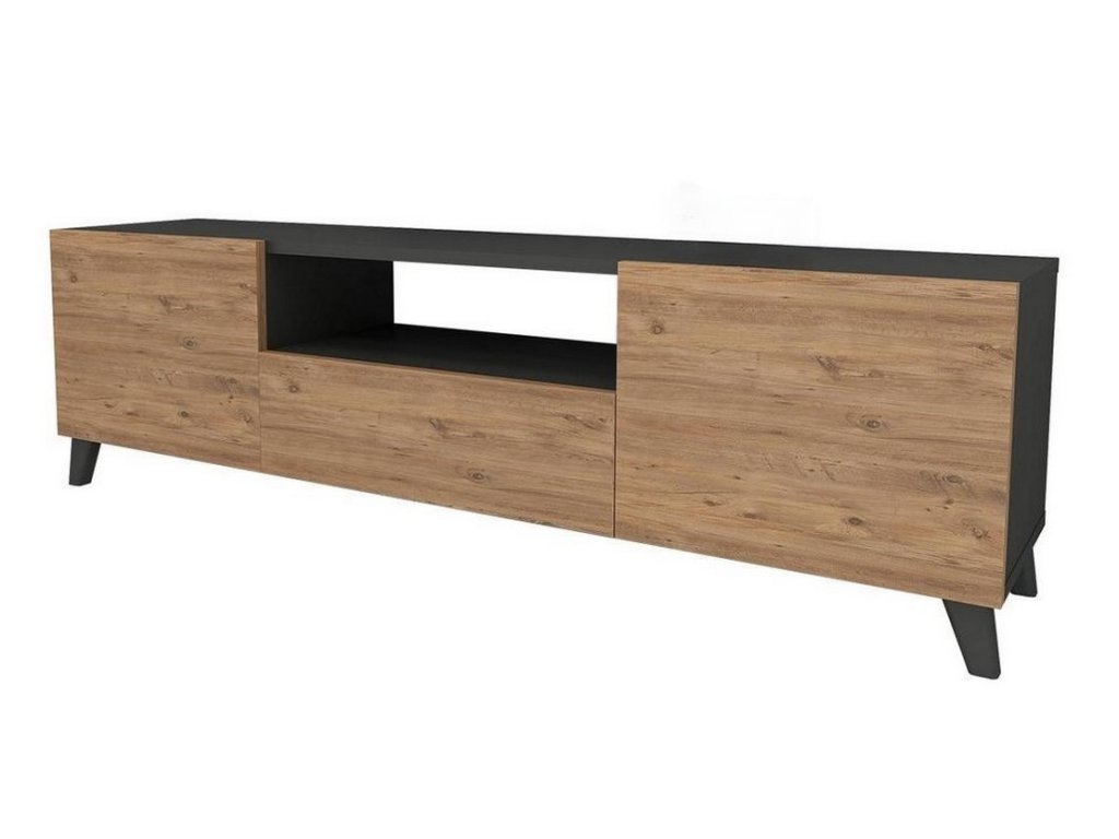 Táto moderná TV skrinka je vyrobená z kvalitných LTD dosiek, ktoré sú nenáročné na údržbu. Ich hrúbka je 18 mm. Farba: antracit, borovica.