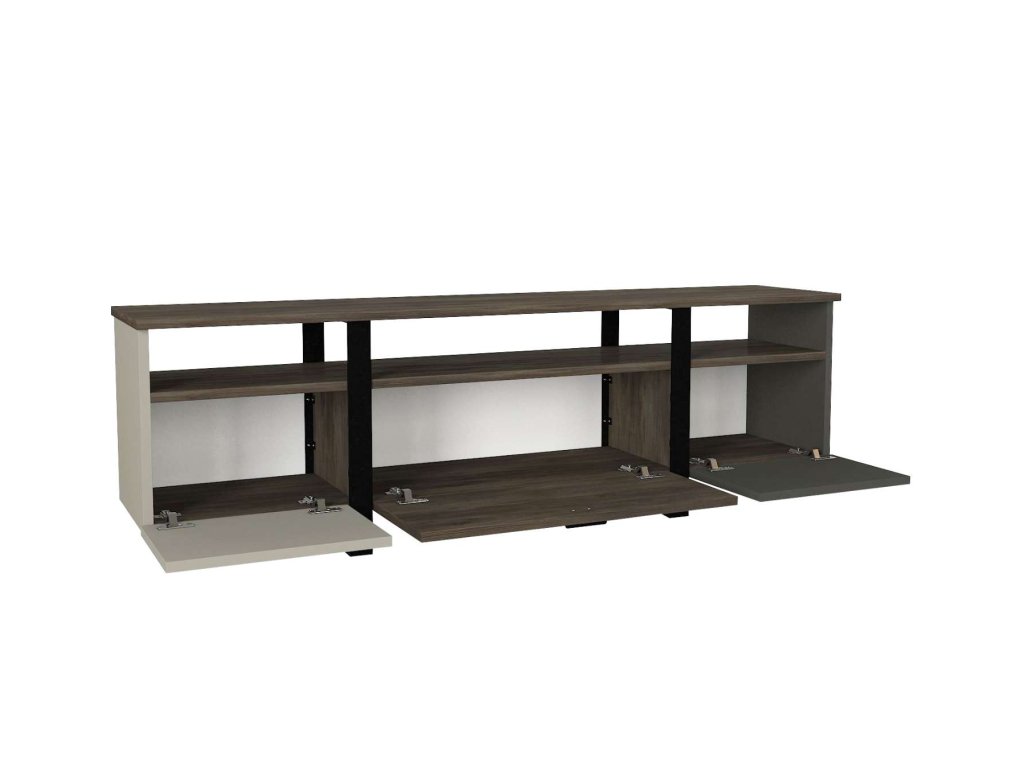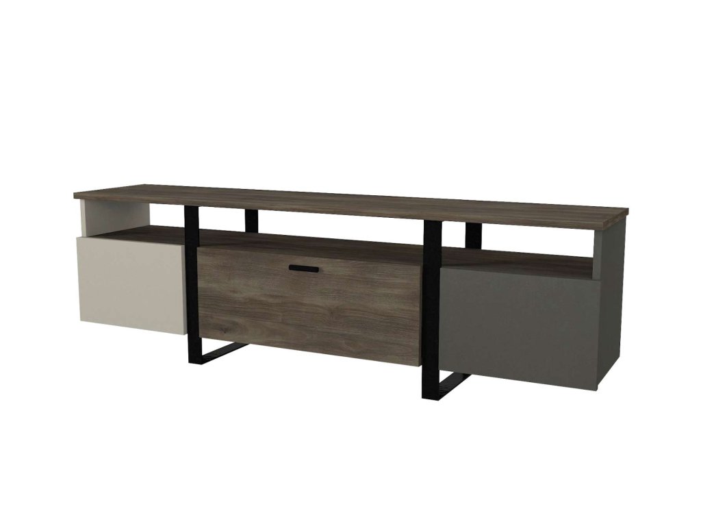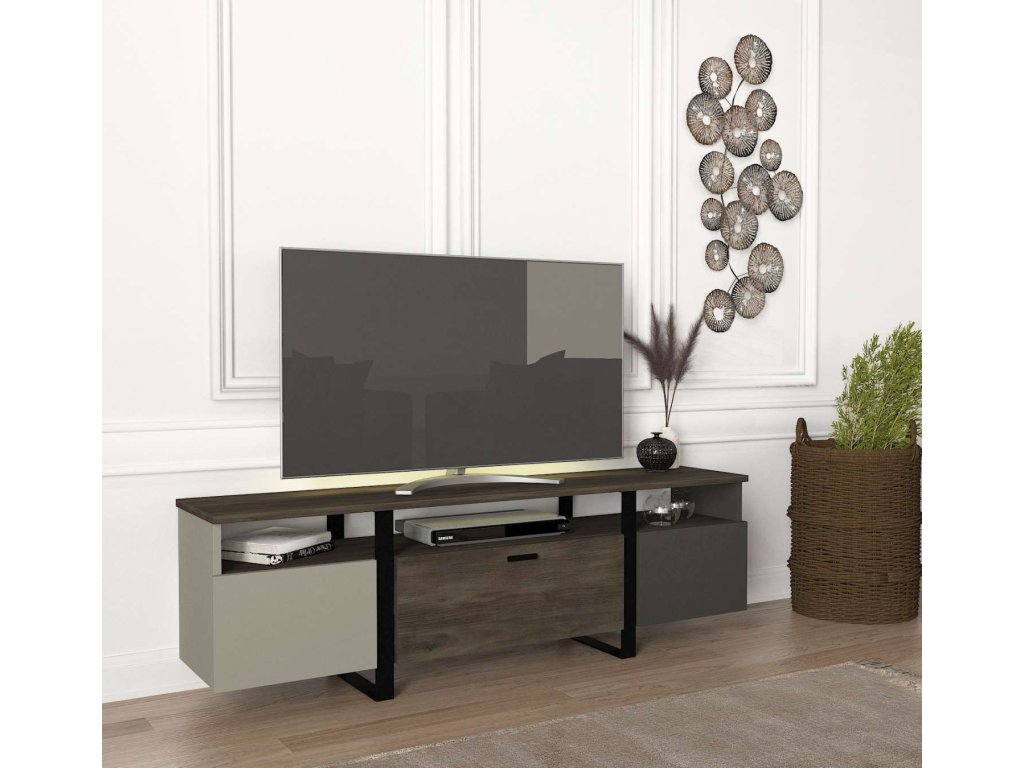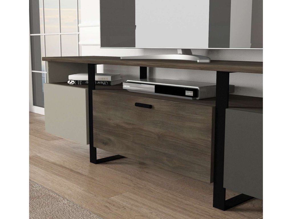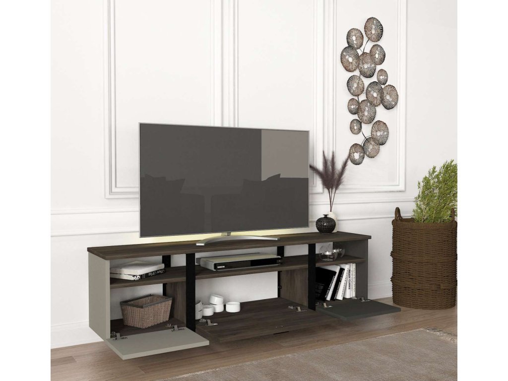 - Vybavenie: Tri skrinky poskytujú štedrý úložný priestor pre multimediálne zariadenia, knihy alebo dekoratívne predmety, zatiaľ čo integrovaná regálka zvyšuje jeho funkčnosť.