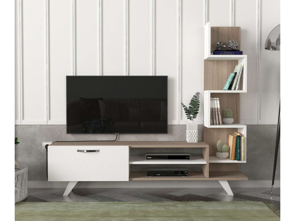 Objavte SERENE, TV stolík, ktorý elegantne kombinuje praktickosť s moderným dizajnom, ideálny pre každú obývaciu izbu. Jeho svieža biela a svetlo hnedá farba prináša do miestnosti pocit pokoja a pohody.