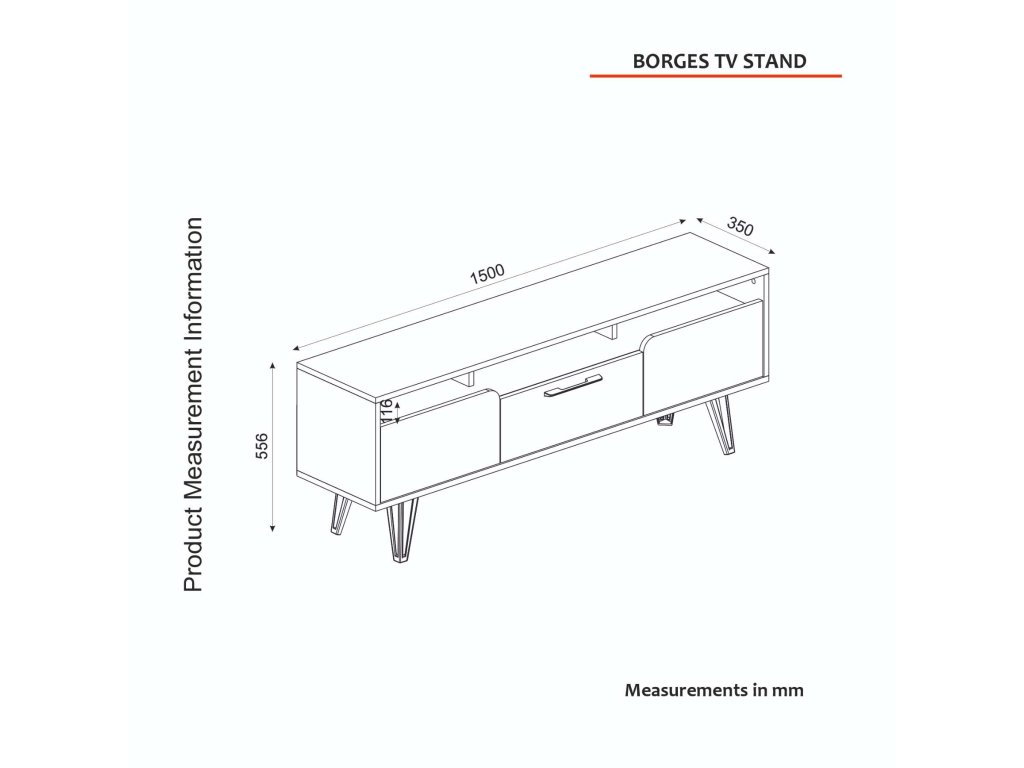 - Rozmery: 150 x 55.6 x 35 cm, poskytujúce dostatok priestoru na umiestnenie vašich multimediálnych zariadení.