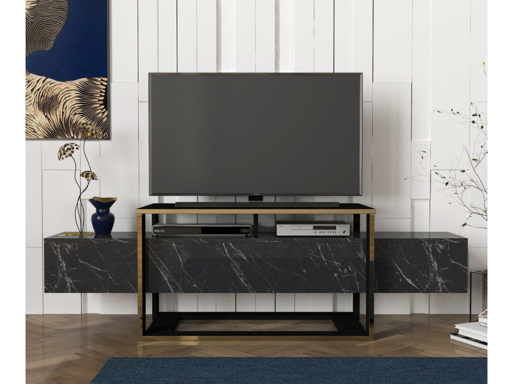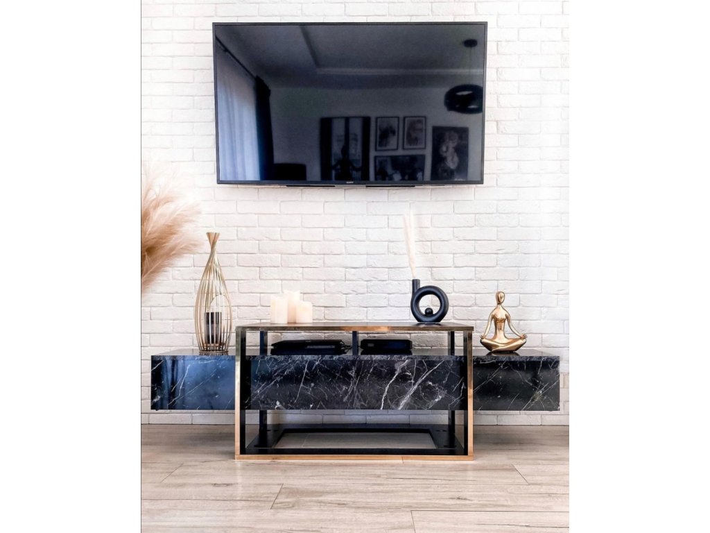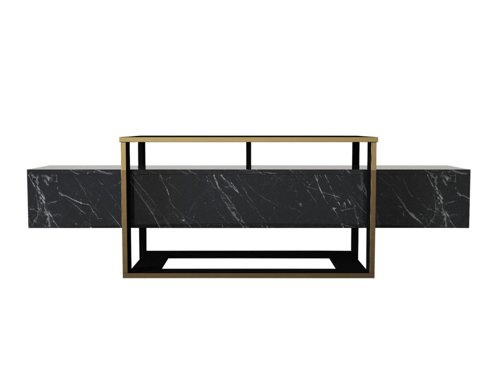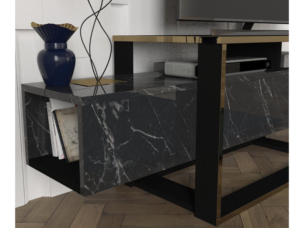 TV stolík DELUXE BIANCO, čierny mramor/zlatá