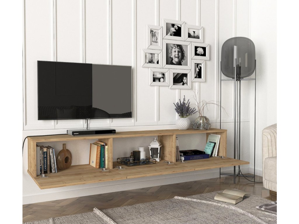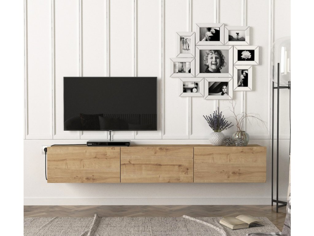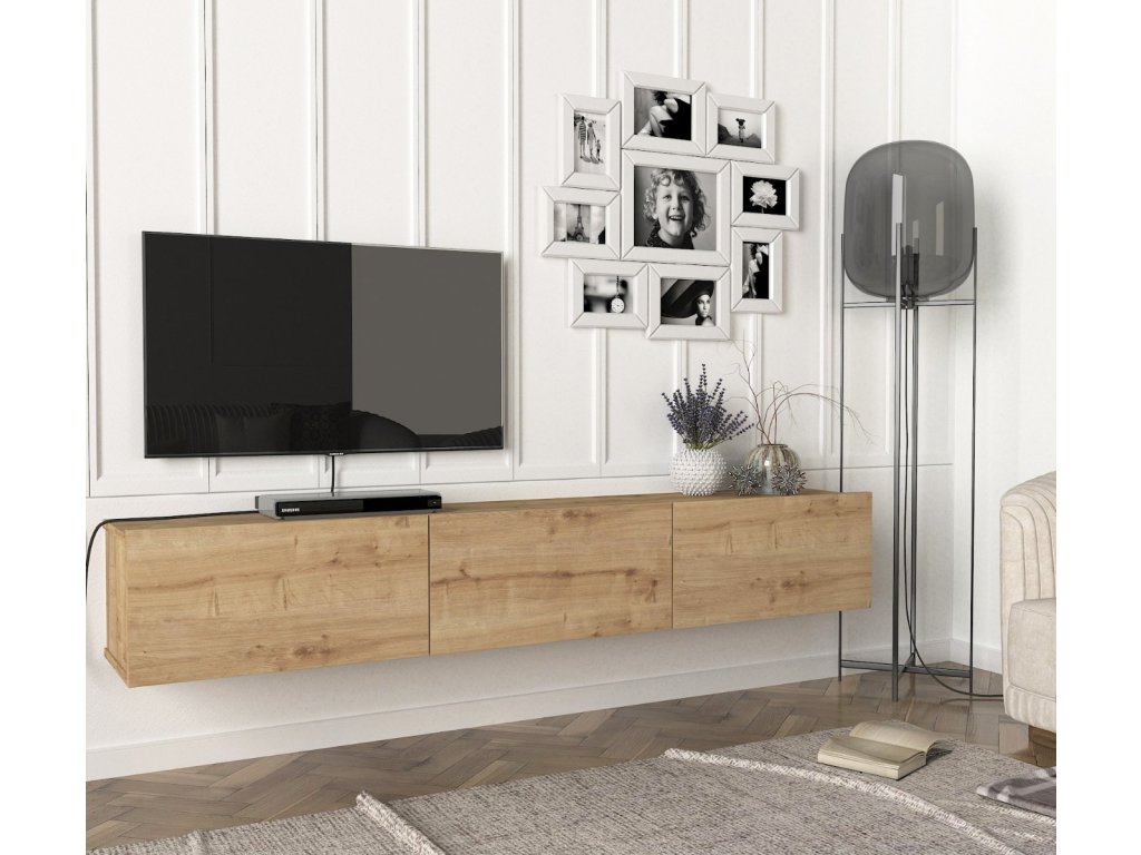 Moderný a štýlový TV stolík DOMEL vás osloví svojim minimalistickým dizajnom a priaznivou cenou. Je ideálny do moderne zariadených priestorov a vďaka závesnému systému pôsobí vzdušne a štýlovo.