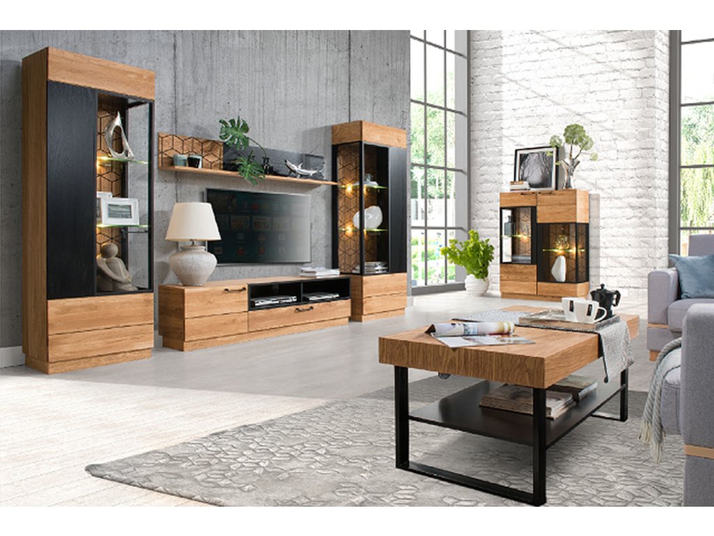 TV stolík MOZAIK vás zaujme svojim elegantným a zároveň luxusným prevedením. Je zo sektoru MOZAIK, vďaka ktorému si poskladáte vašu obývačku podľa predstáv. Je vyrobený z lešteného a olejovaného masívneho dreva. Farebné prevedenie: dub/čierna matná. Úchyty sú v čiernej matnej farbe, vyrobené z kovu. TV stolík disponuje dvomi zásuvkami. V spodnej časti sú dve otvorené poličky na wifi router, dvd prehrávač a podobne. Sektorový nábytok MOZAIK vám ponúka moderný dizajn a kvalitné prevedenie. Prírodná vôňa masívneho dreva a dlhá životnosť nábytku vás presvedčia, že nábytok MOZAIK je to najlepšie riešenie. Nábytok sa ľahko kombinuje s akýmkoľvek interiérom. Vďaka svojmu prevedeniu zútulní vašu obývaciu miestnosť. Výhodou nábytku MOZAIK je, že sa dodáva už zmontovaný. Záruka 24 mesiacov.Dodatočné parametre