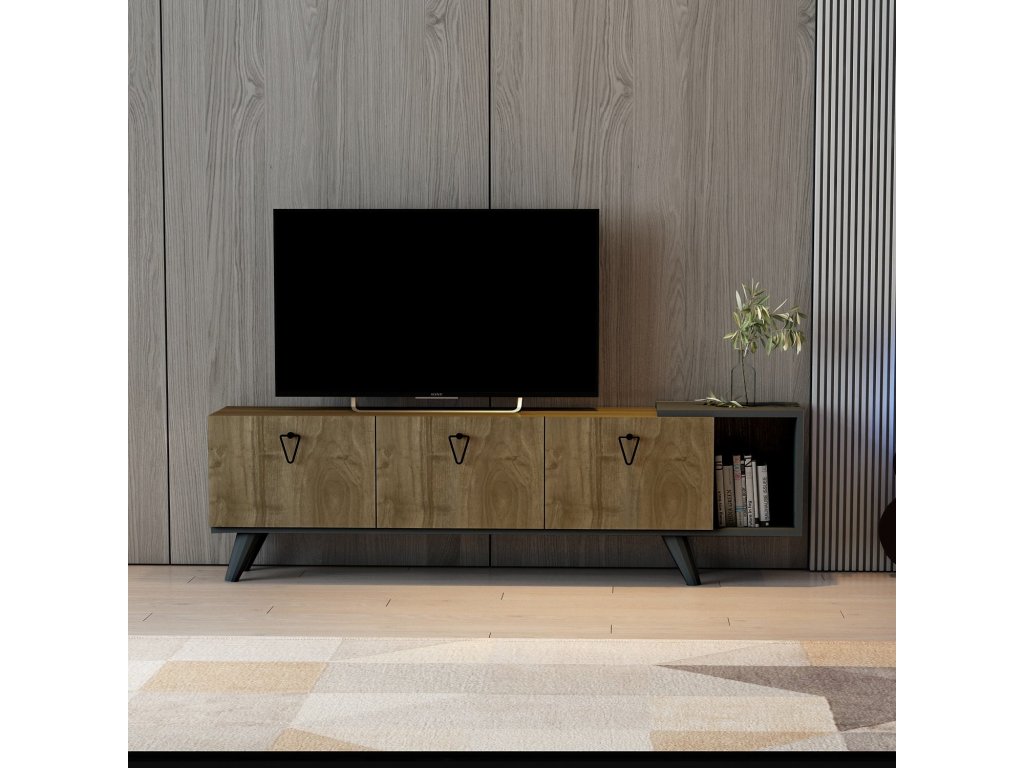 TV stolík ALASKA prináša moderný a elegantný dizajn, ktorý zaujme na prvý pohľad. Je ideálnym doplnkom do obývacej izby a ponúka praktické úložné priestory vďaka kombinácii troch plných dvierok (skriniek) a regálku. Kvalitné materiály a luxusný vzhľad zaistia dlhú životnosť a jedinečný štýl vášho interiéru.