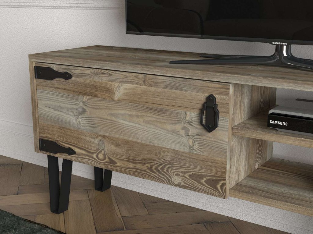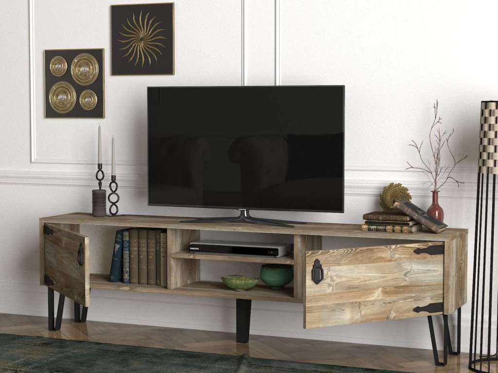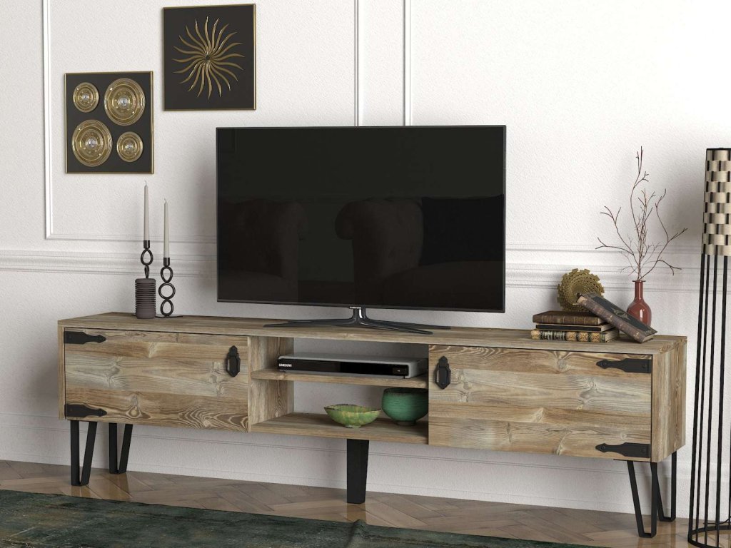 - Vybavenie: Regálka a 2 skrinky, poskytujúce dostatok úložného priestoru pre elektroniku, knihy alebo dekorácie.