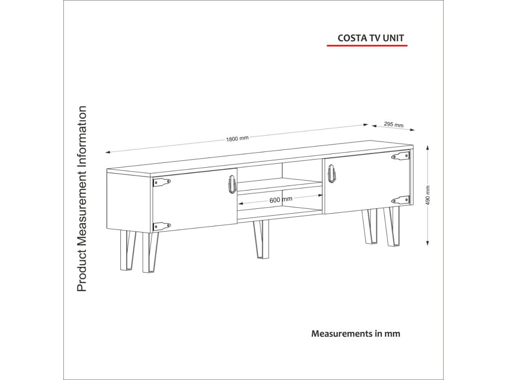 - Rozmery: 49 x 180 x 30 cm, ideálny pre moderné obývacie priestory.