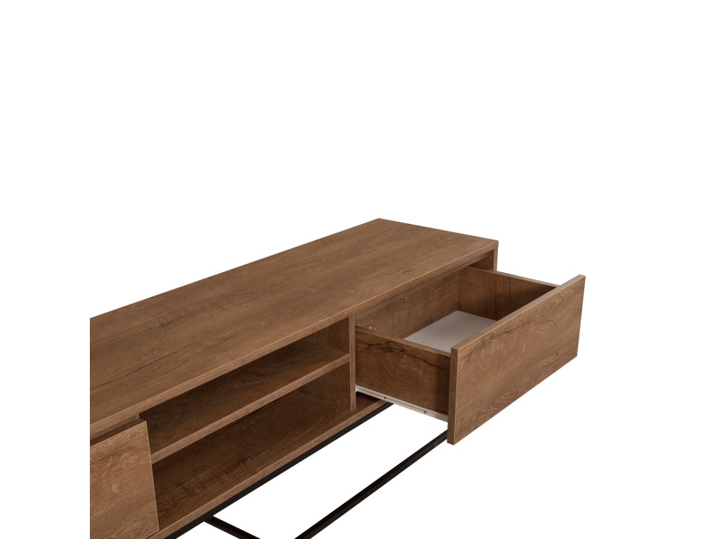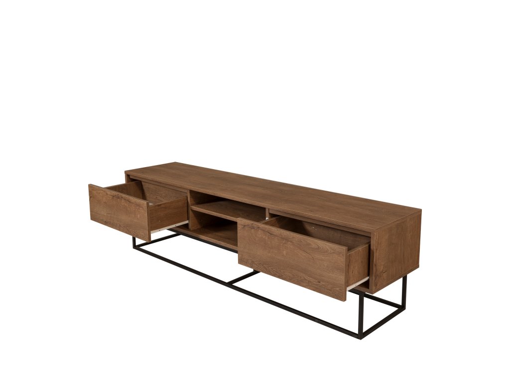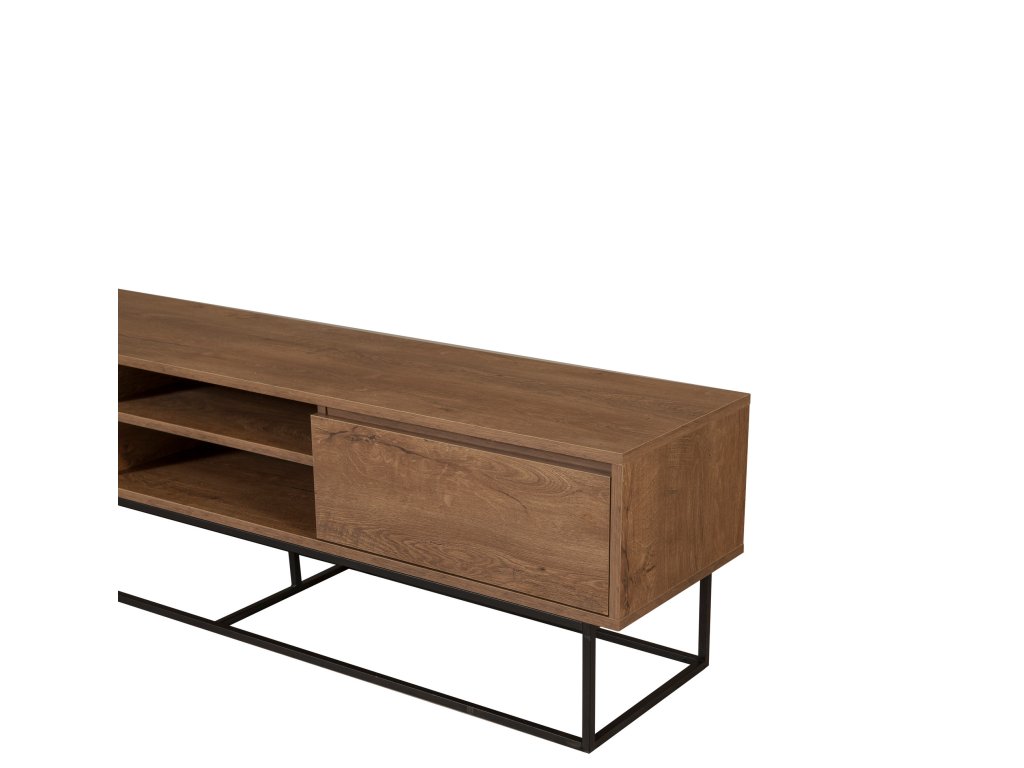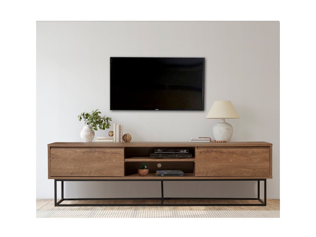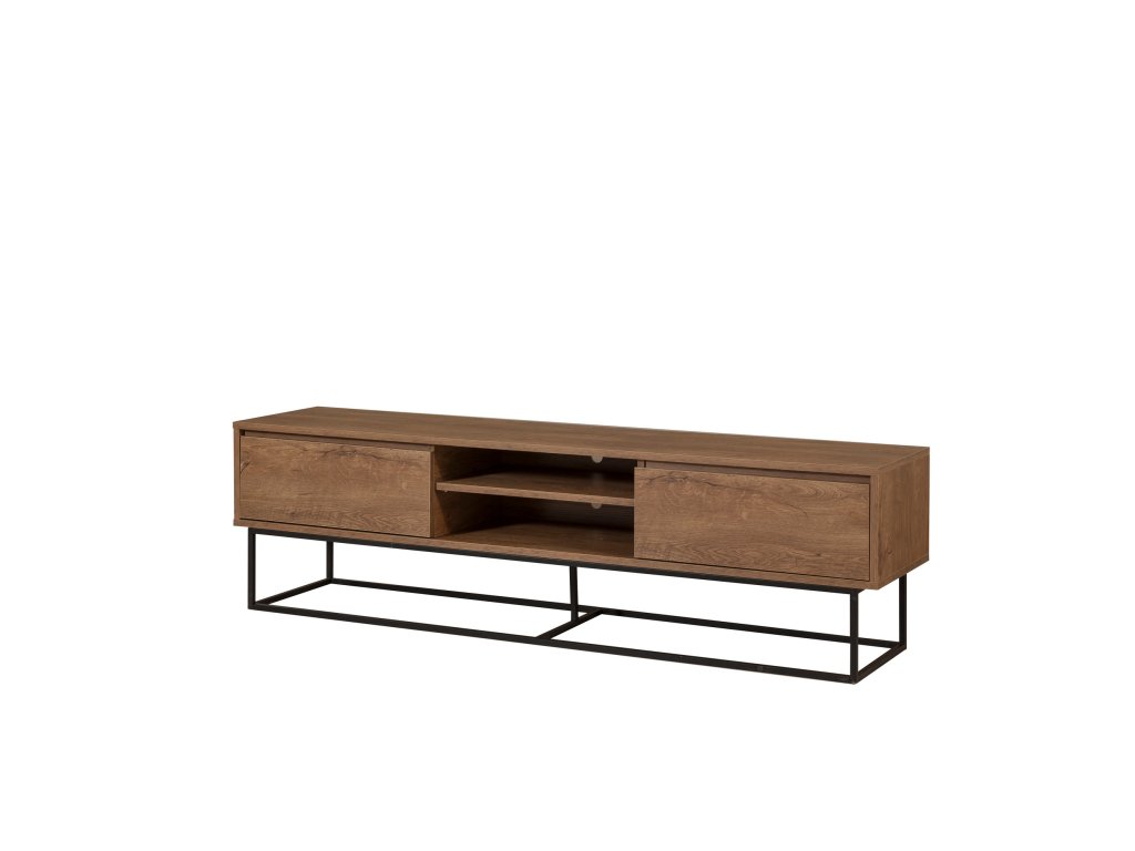 TV stolík DOJA je dokonalým spojením moderného industriálneho štýlu a praktického dizajnu. S dekorom orecha a čiernymi kovovými prvkami prináša do obývacej izby eleganciu a funkčnosť.