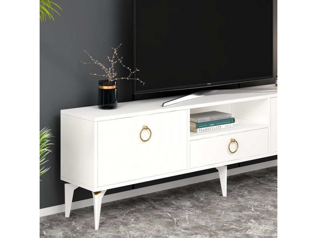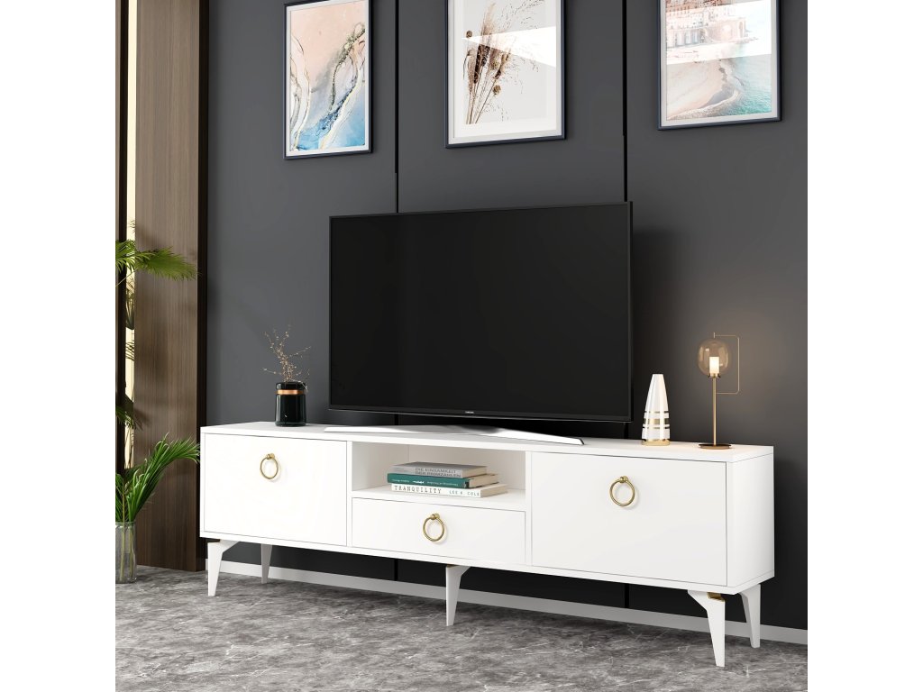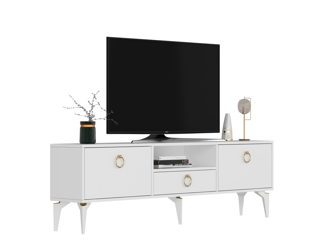 TV stolík DOTA je skvelým riešením pre každého, kto hľadá štýlový a funkčný nábytok do svojej obývačky. S jeho moderným dizajnom a praktickým usporiadaním ľahko udržíte svoj obývací priestor organizovaný a elegantný.