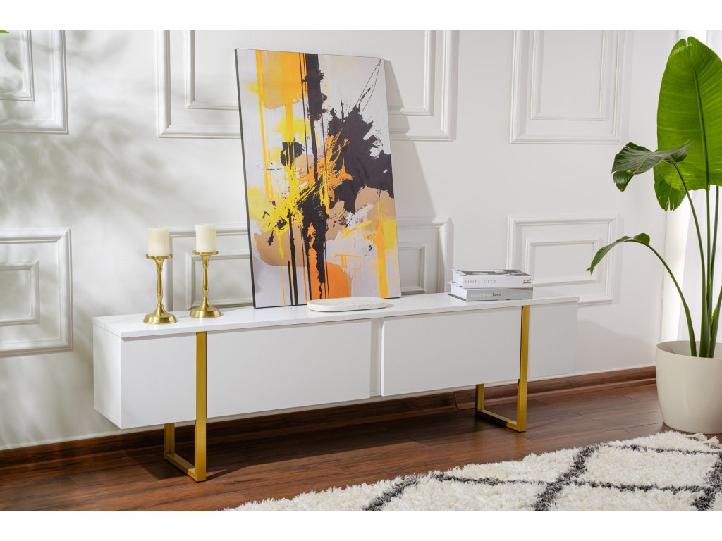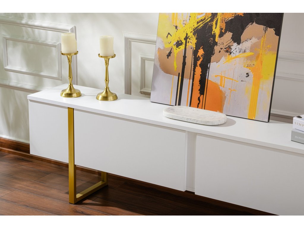 TV stolík na nožičkách FASE, biela / zlatá